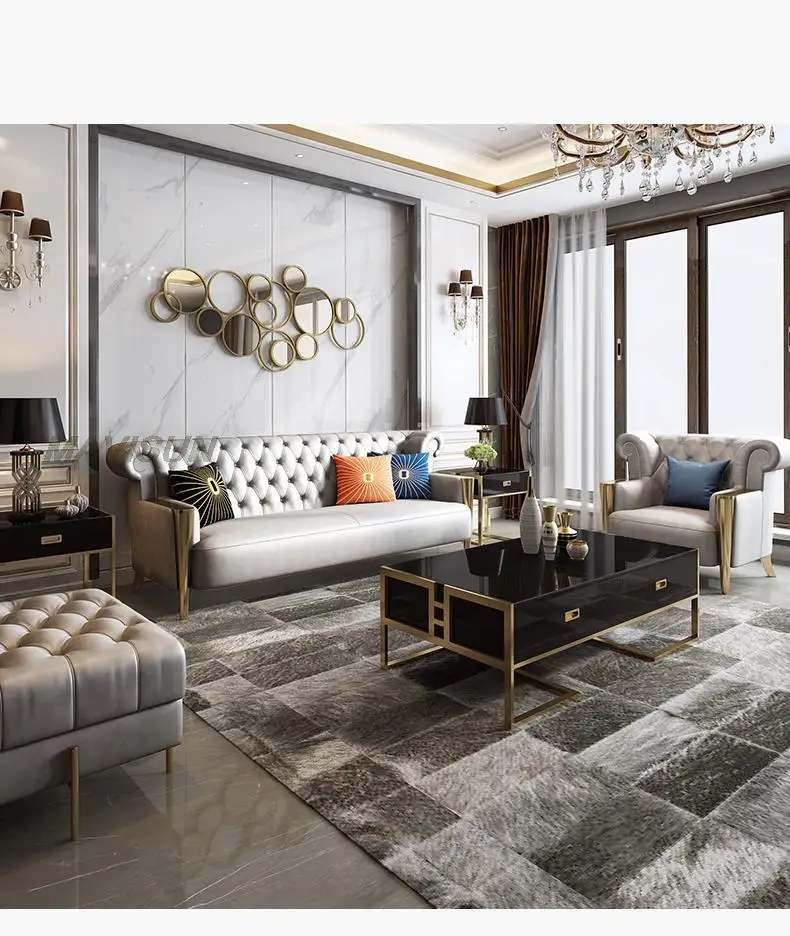 Silver Gray High-End Living Room Sofa Combination Corner Light Luxury Solid Wood Simple Post-Modern Furniture All Sofas
