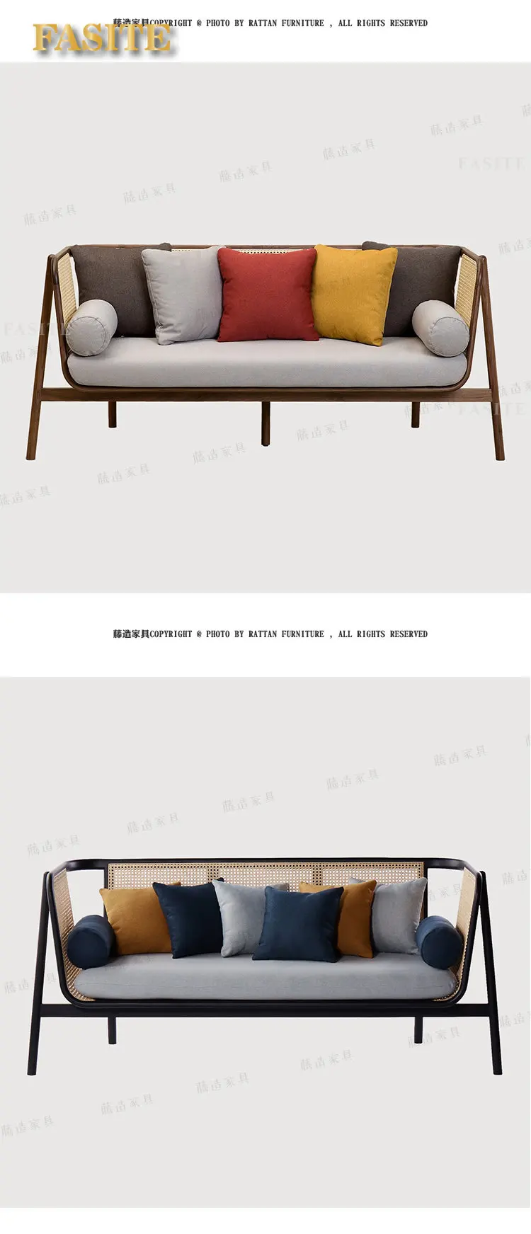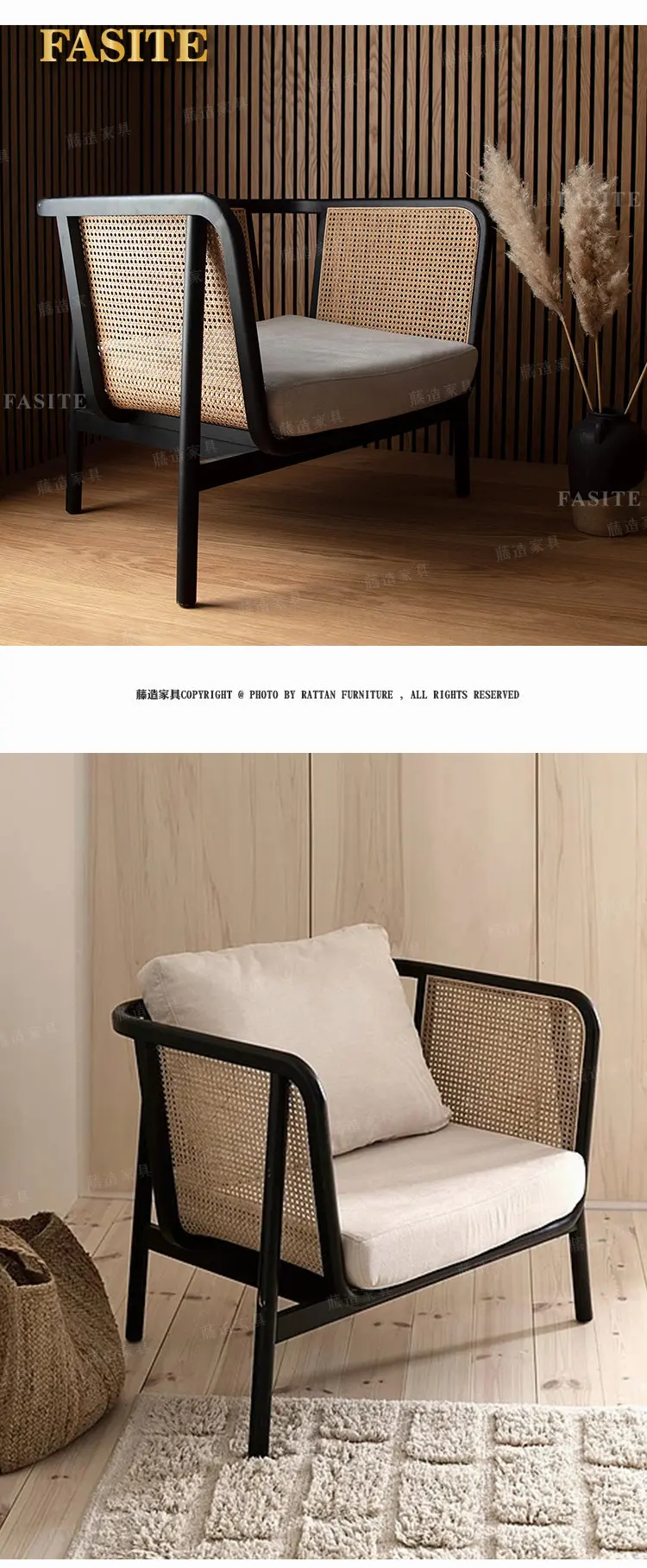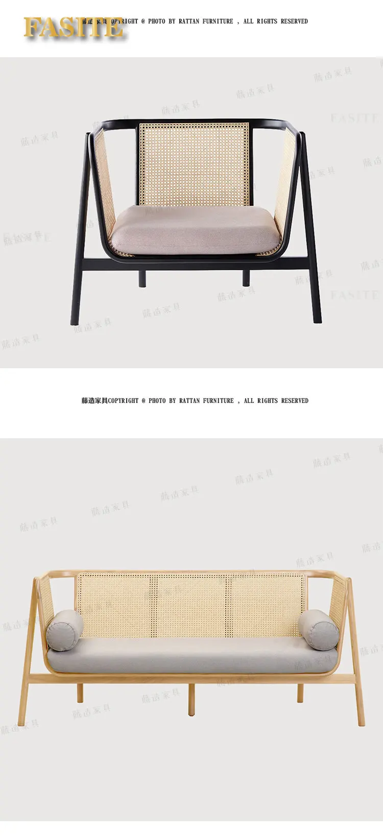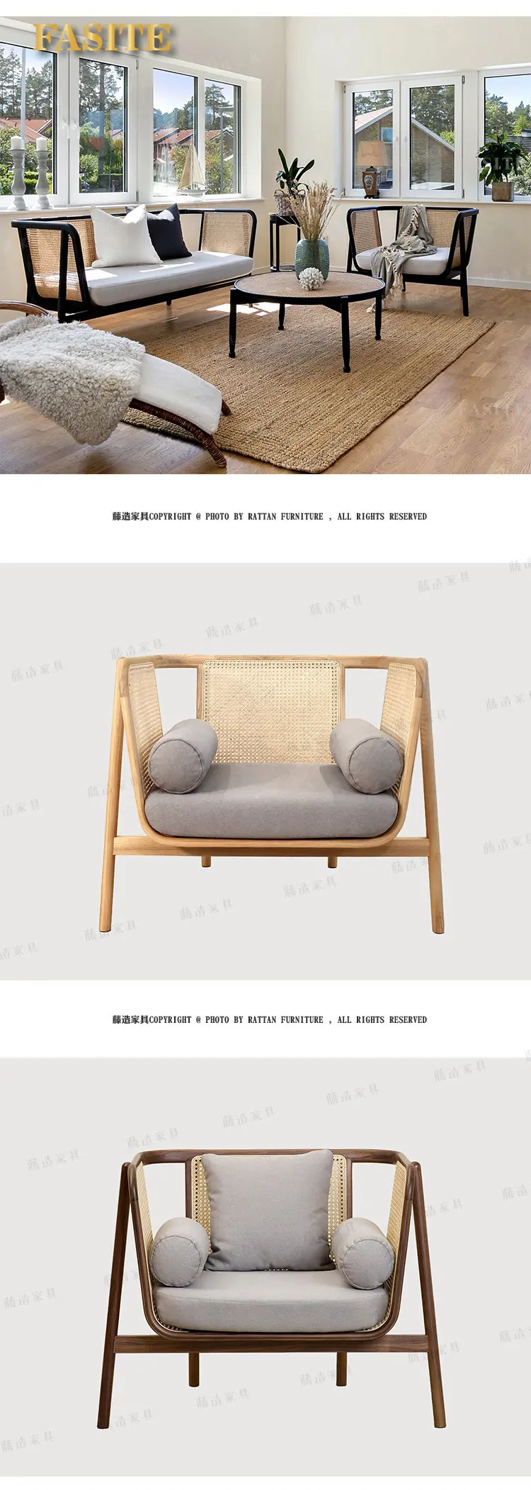 Simple and complete set of single person wooden sofa combination living room small leisure solid wood sofa rattan chair sofa