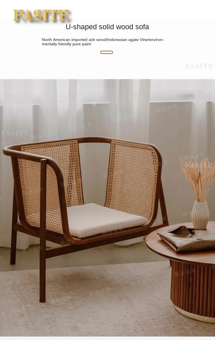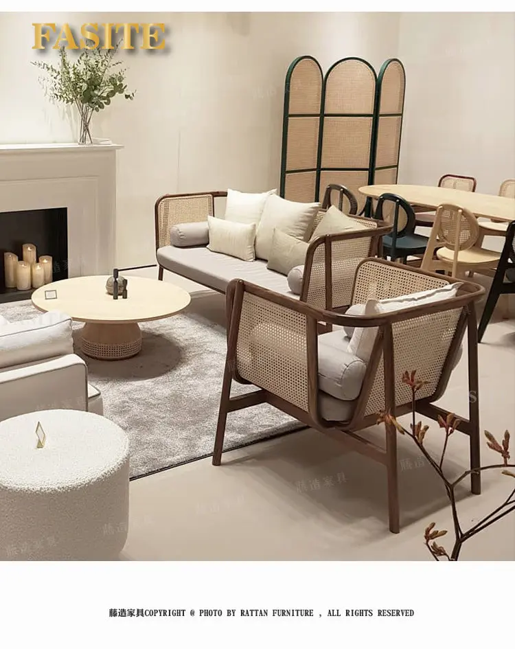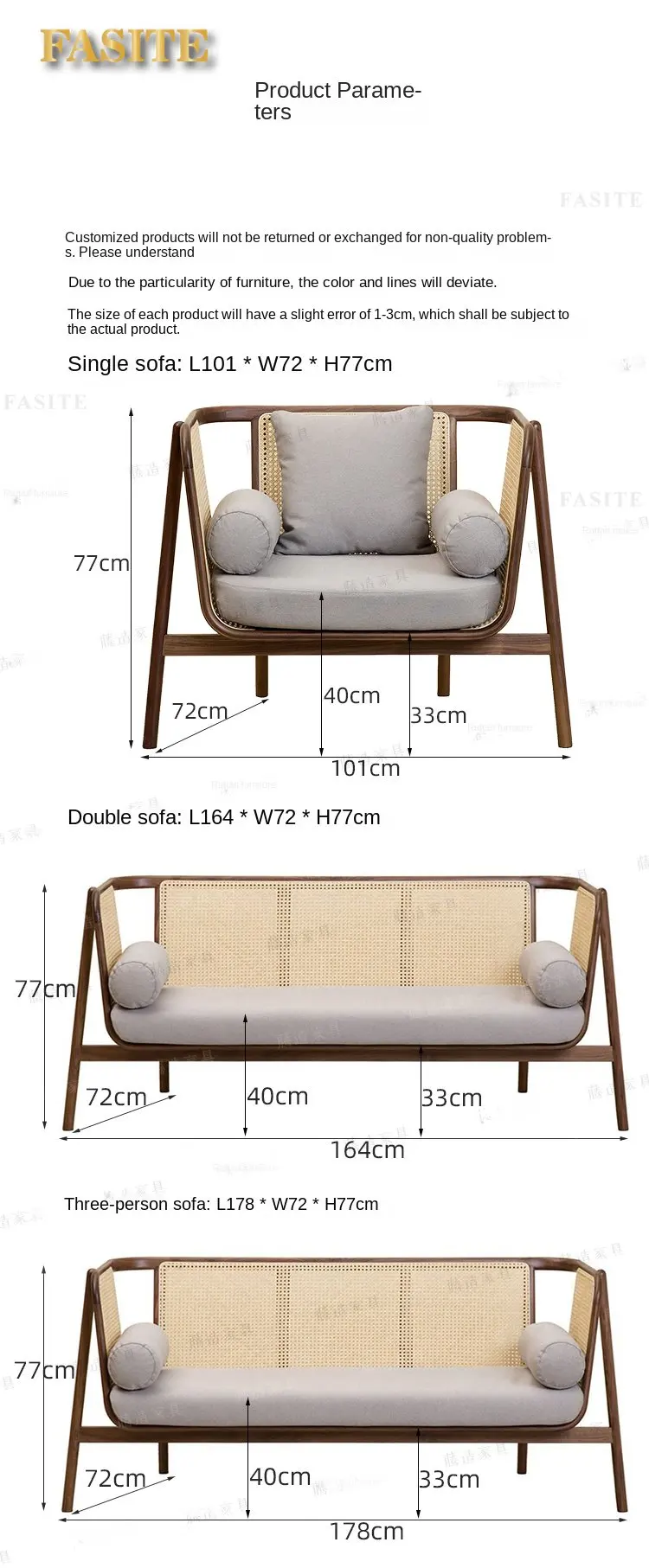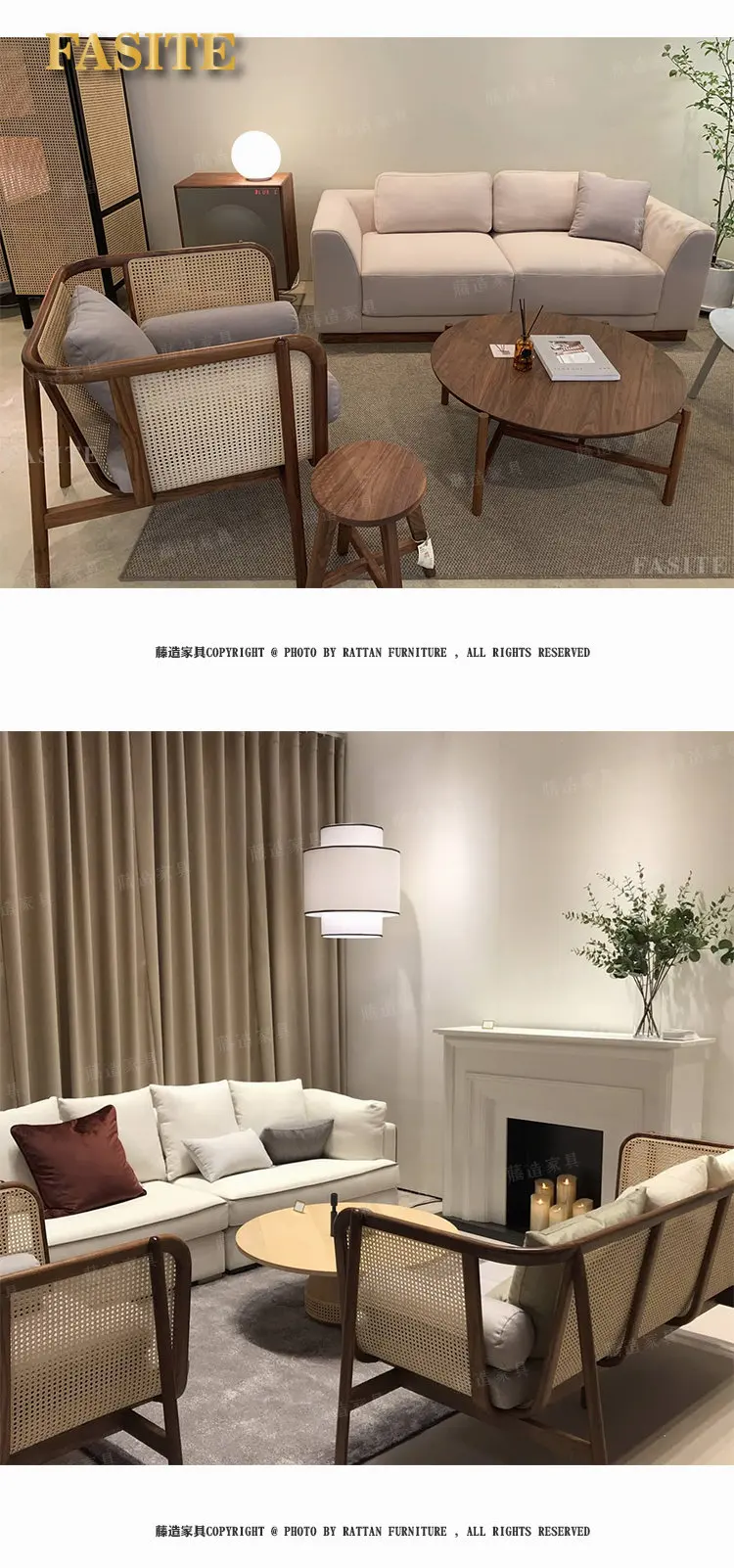 Simple and complete set of single person wooden sofa combination living room small leisure solid wood sofa rattan chair sofa
