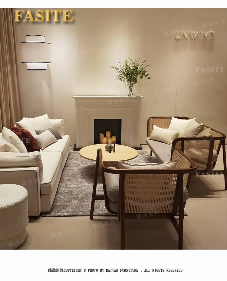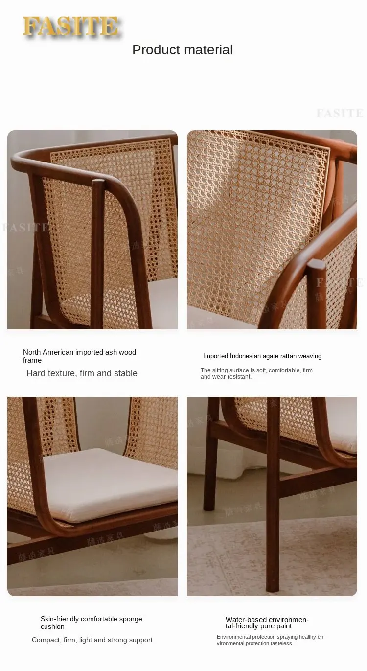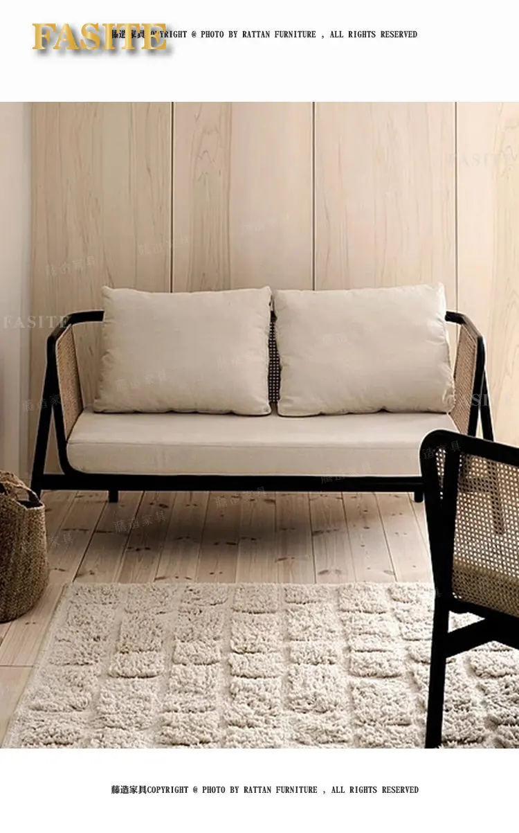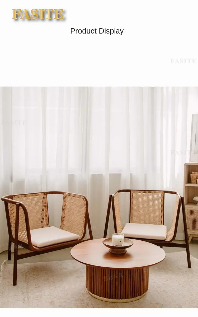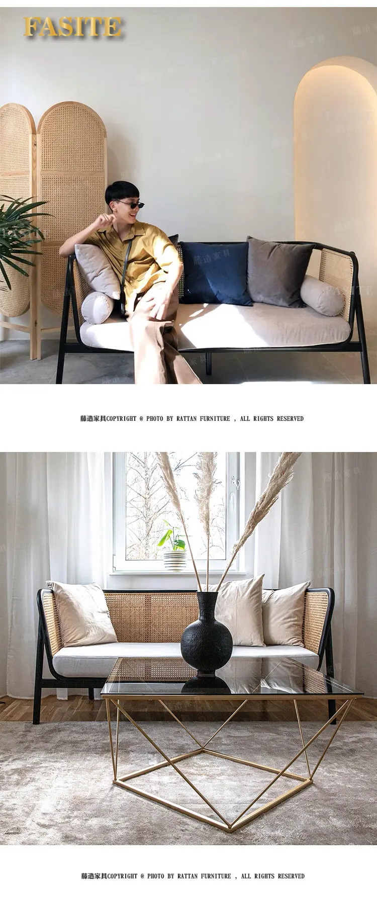 Simple and complete set of single person wooden sofa combination living room small leisure solid wood sofa rattan chair sofa