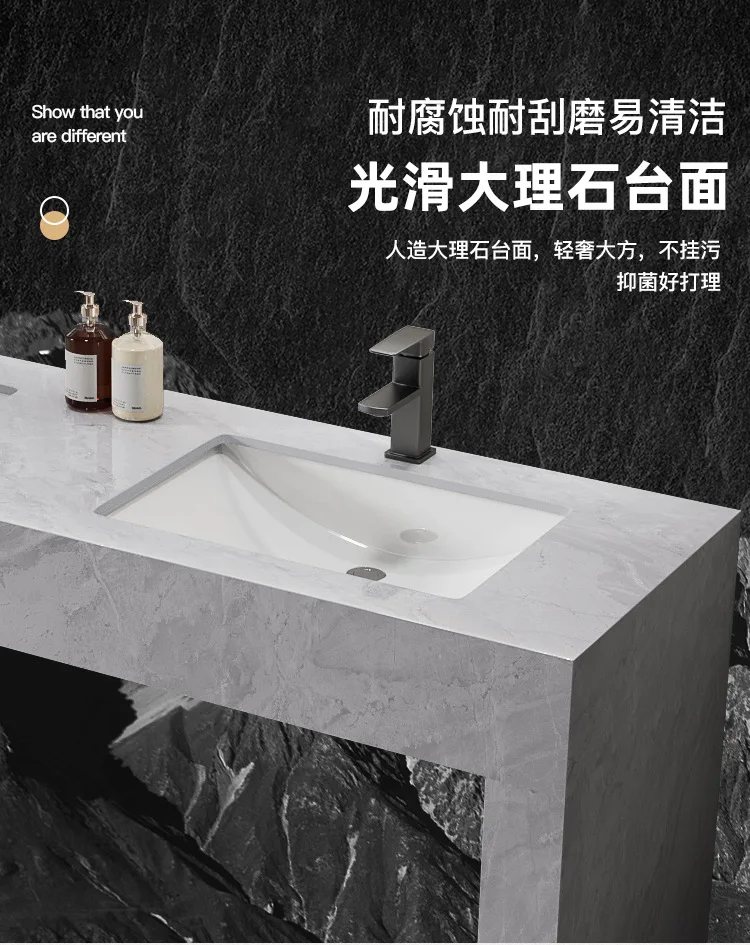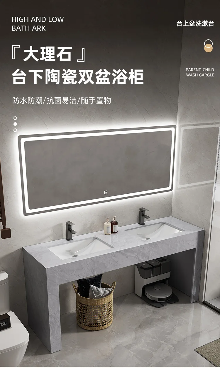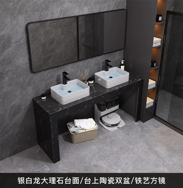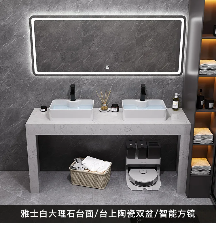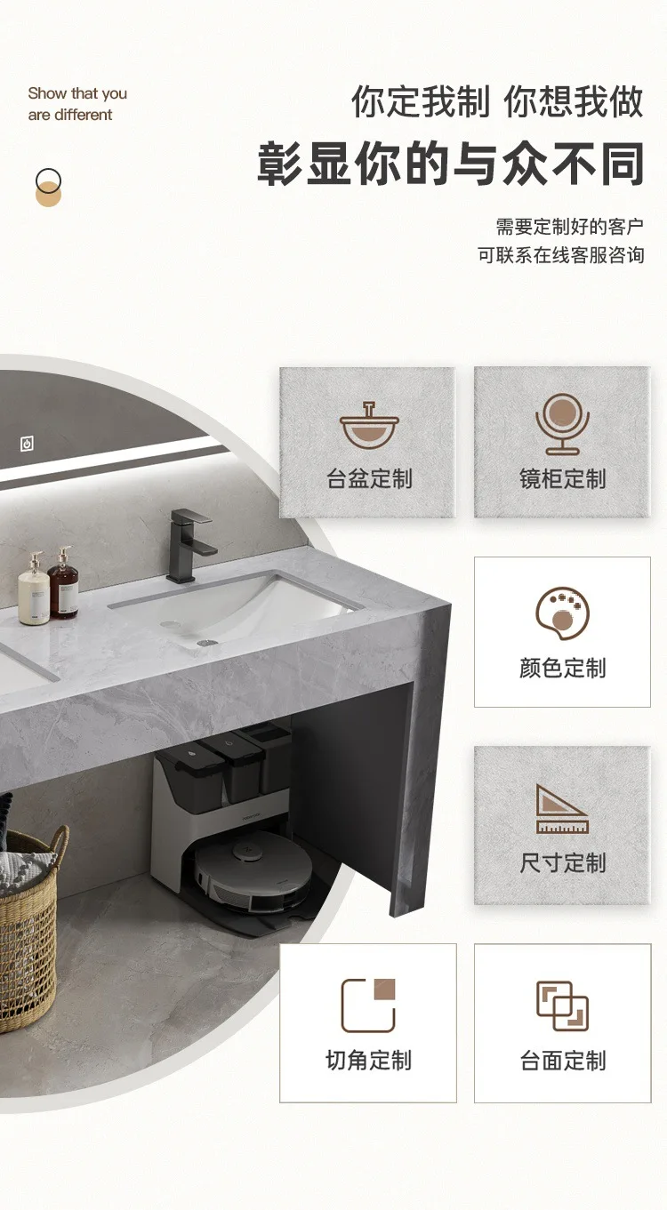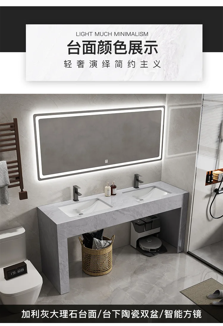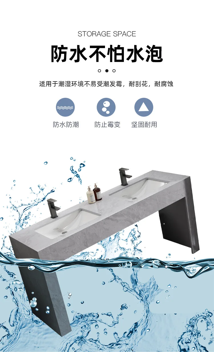 Simple Slate Bathroom Cabinet Sink Public Toilet Intelligent Induction Double Washbasin Sets Floor Furniture Custom Wash Table
