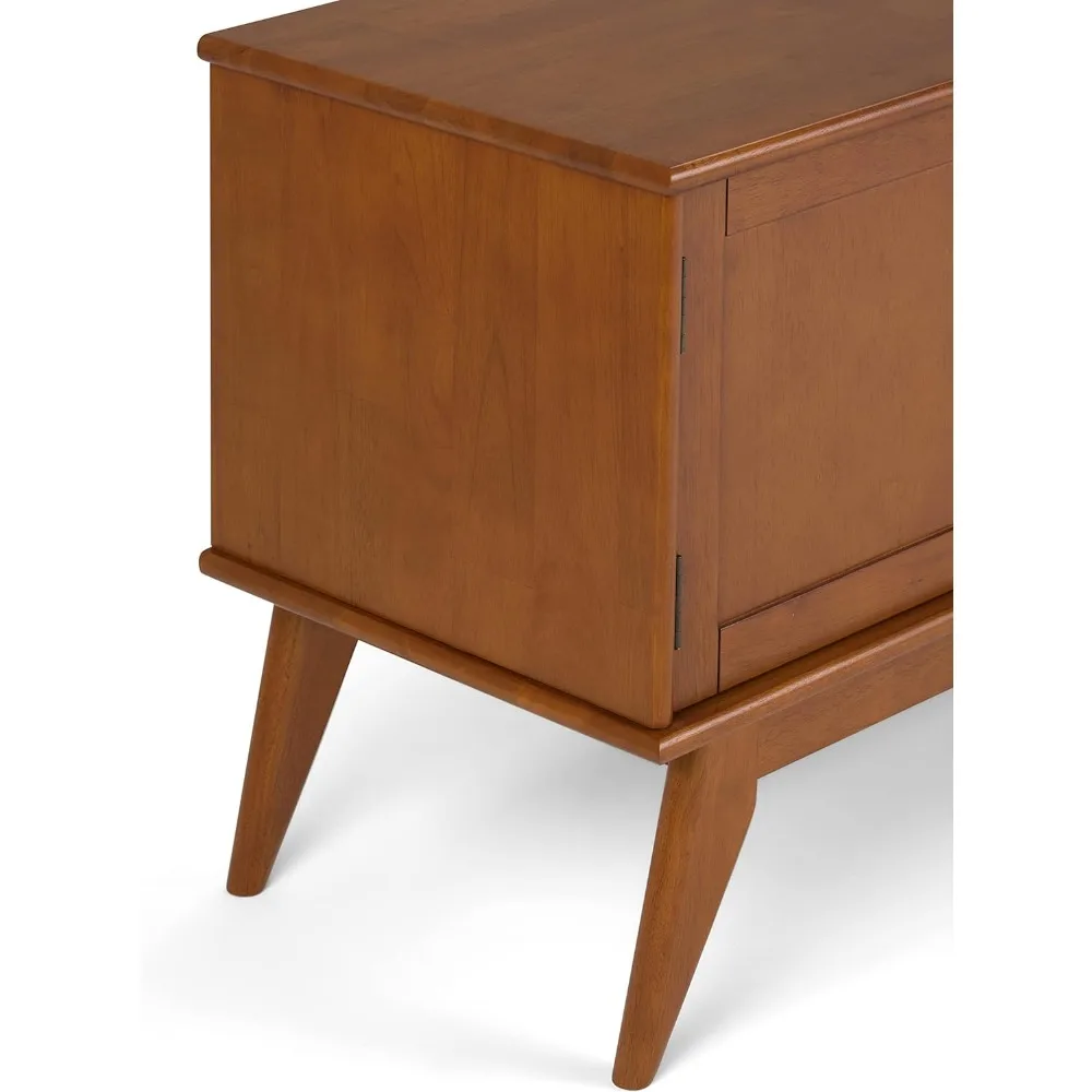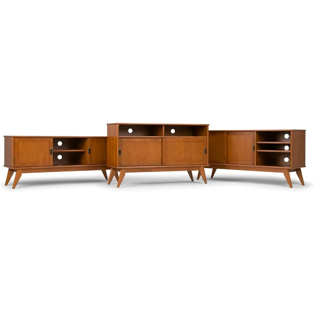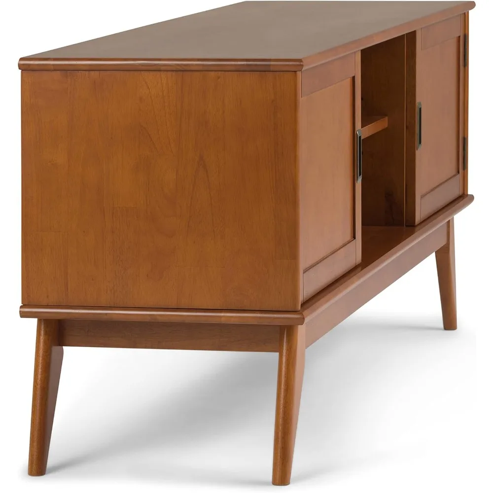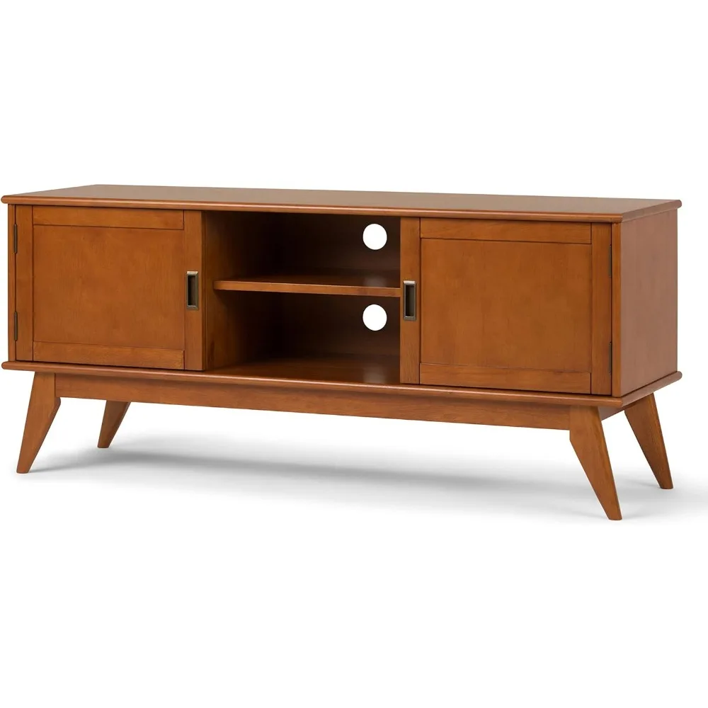 SIMPLIHOME Draper SOLID HARDWOOD 60 Inch Wide Mid Century Modern TV Media Stand in Teak Brown For TVs up to 65 Inches, For