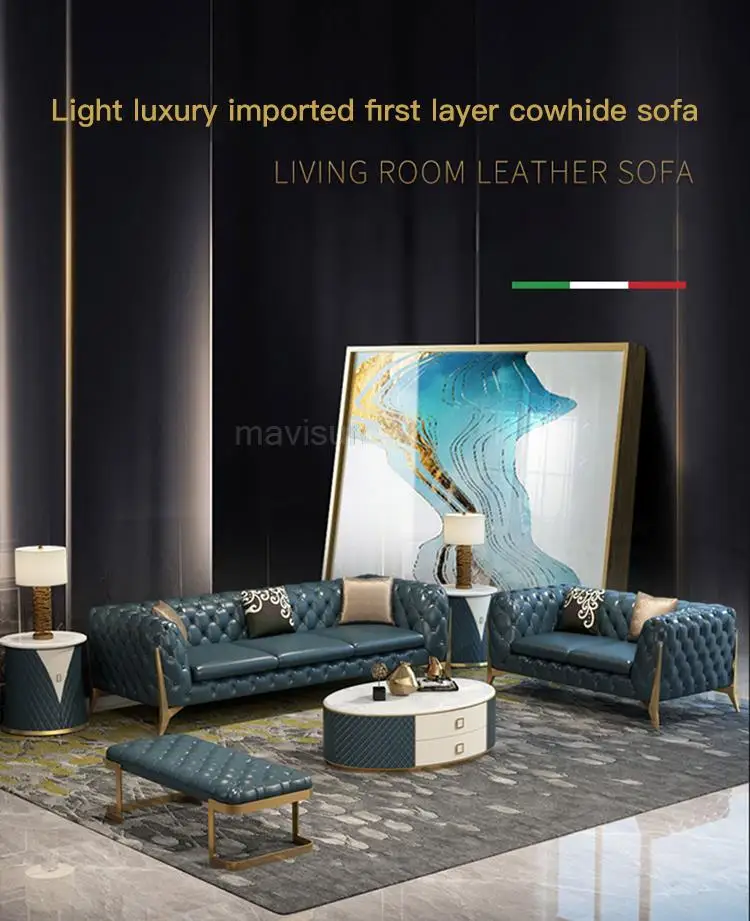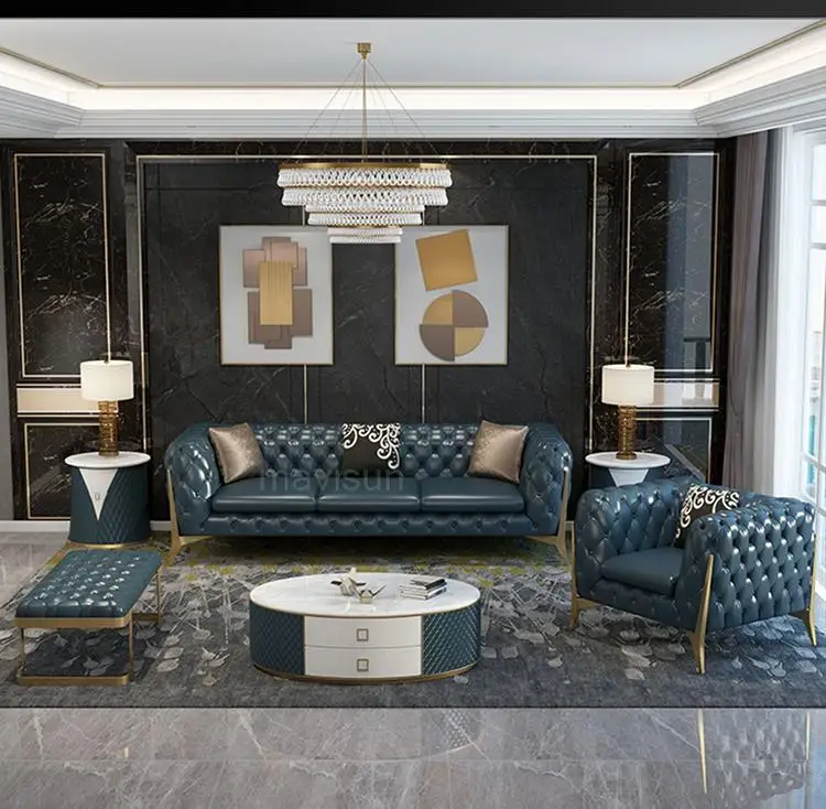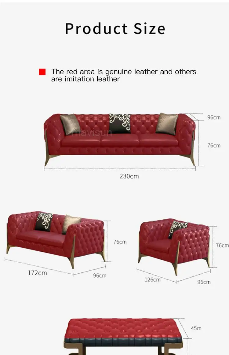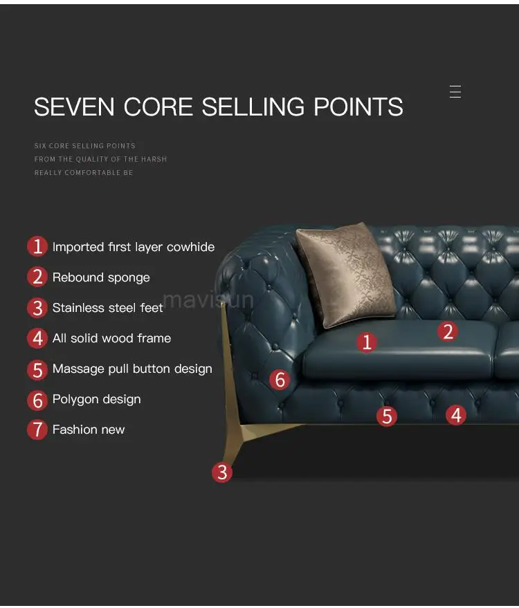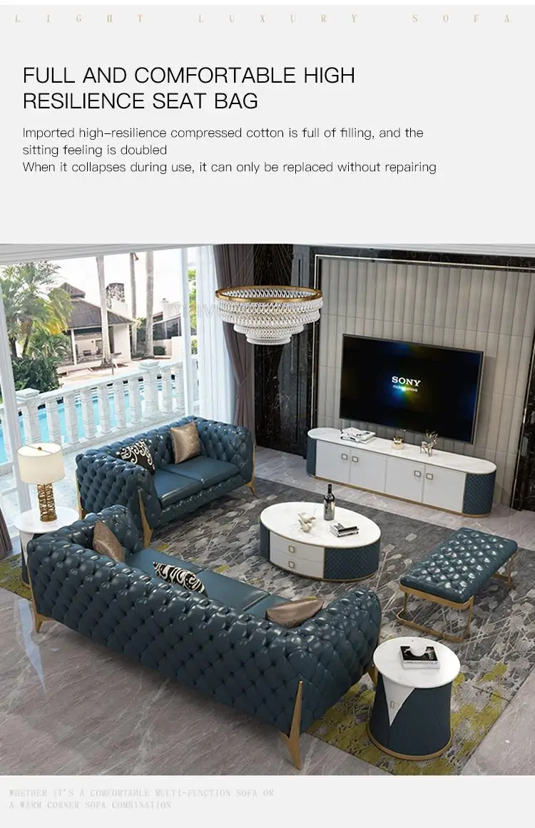 Single Living Room Real Genuine Leather Chesterfield Sofas For Large Villa Nordic Recliner Sofa Set HousehPatio Furniture