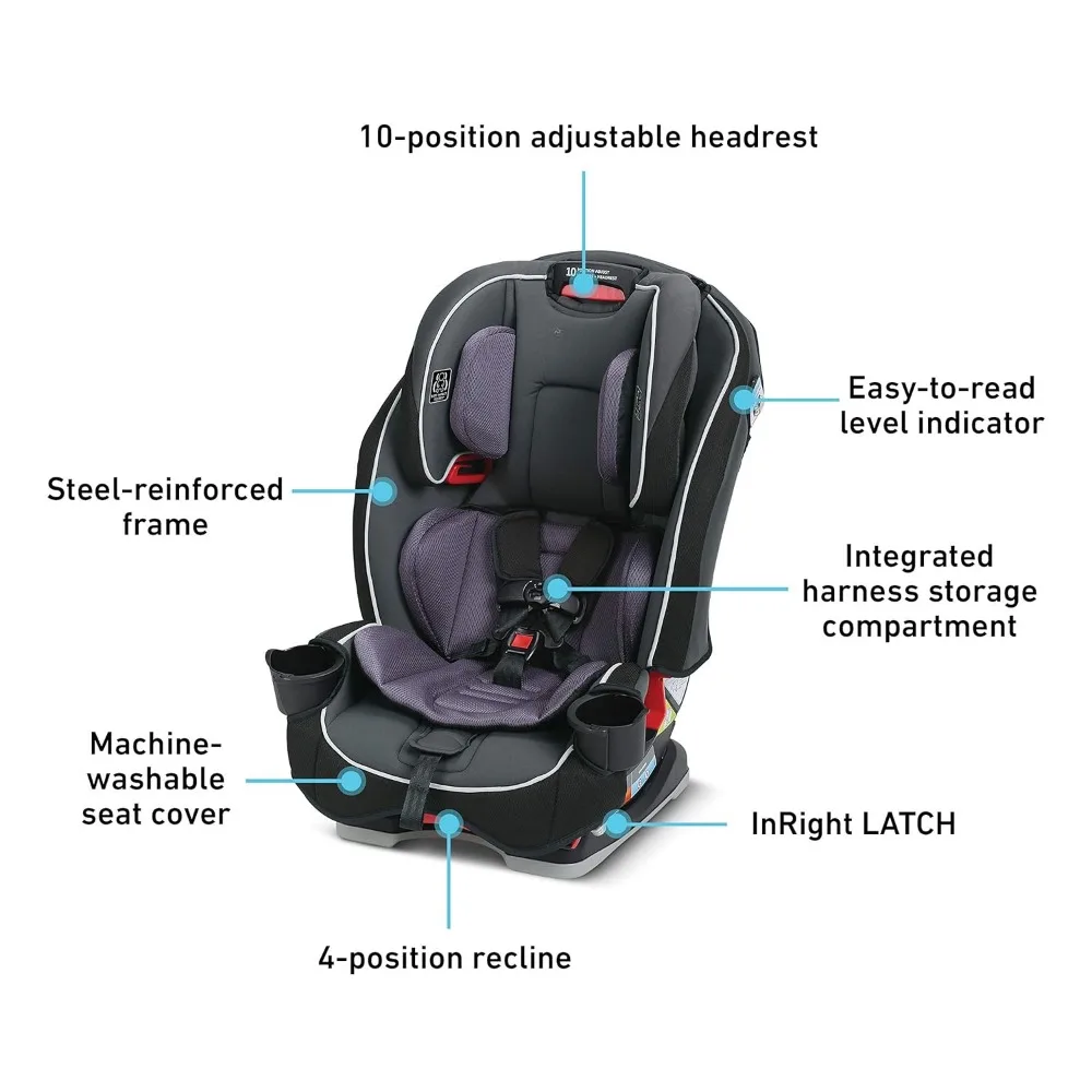 - 3-in-1 car seat grows with your child from rear-facing harness (5-40 pounds) to forward-facing harness (22-65 pounds) to highback booster (40-100 pounds)