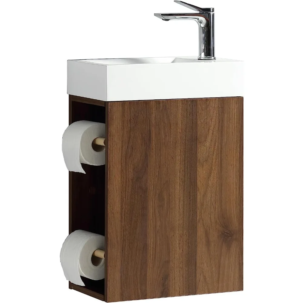Small Bathroom Sink Cabinet Set With 2 Toilet Paper Holders Modern Painted Wall Mounted Small Bathroom Vanity With Sink Wallnut