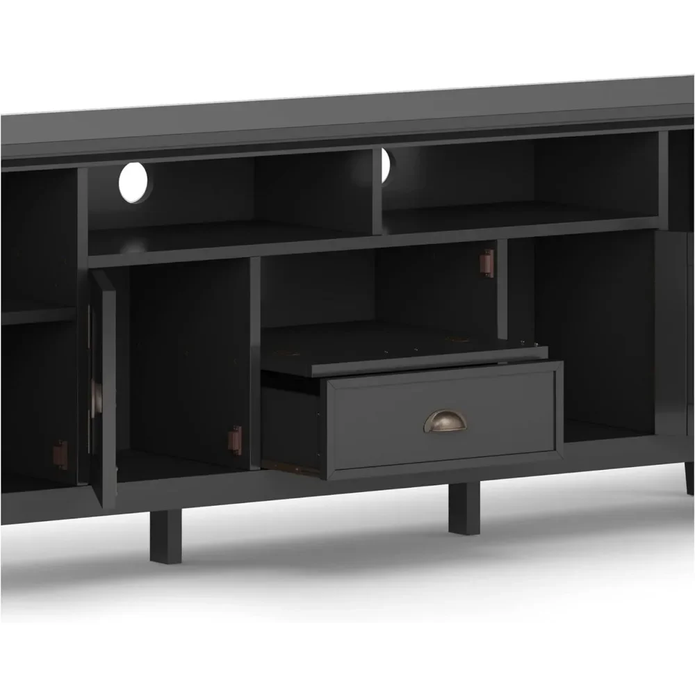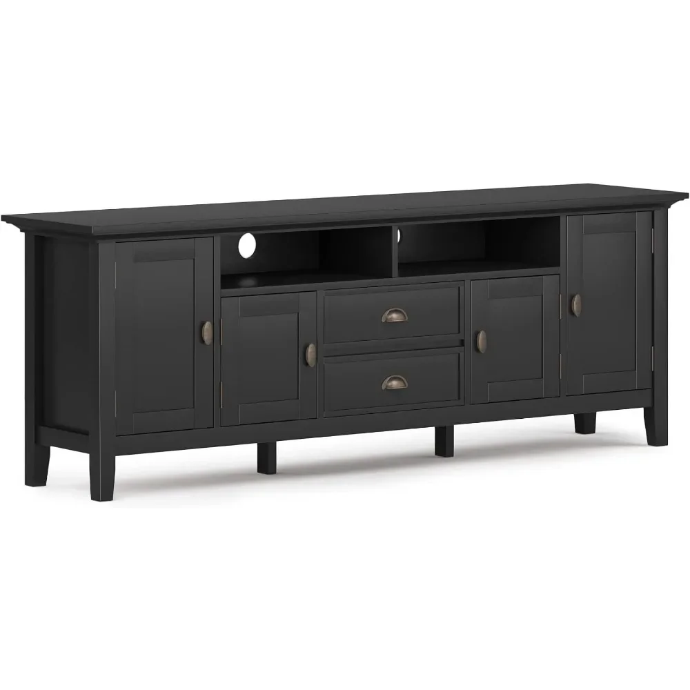 SOLID WOOD 72 Inch Wide Transitional TV Media Stand in Black For TVs Up to 80 Inches Modern Living Room Tv Cabinet Freight free