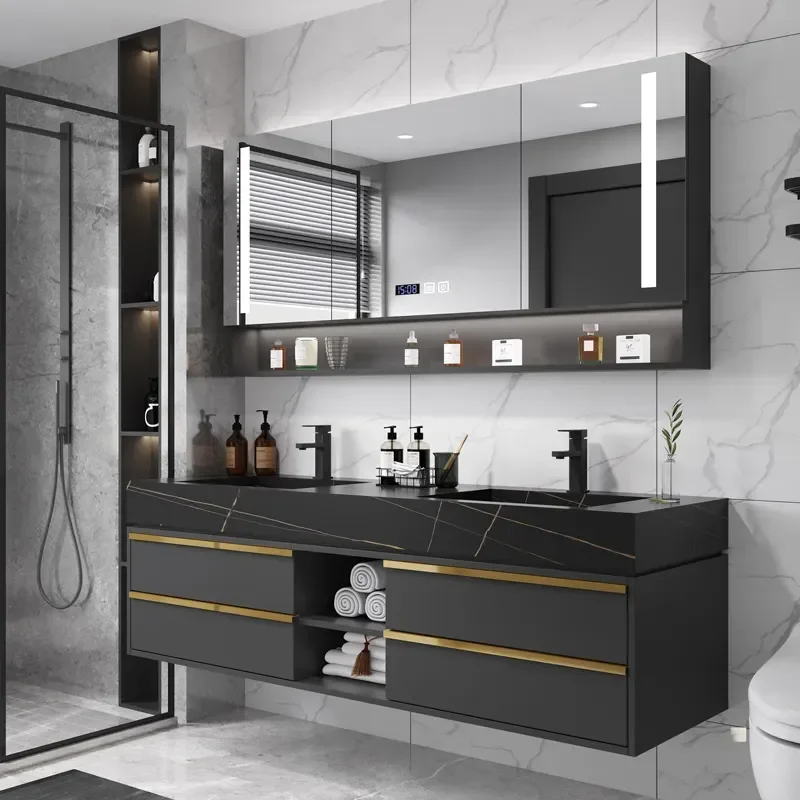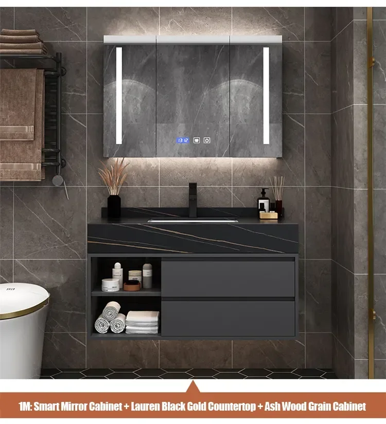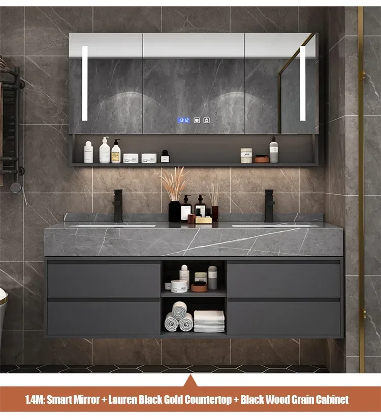 Solid Wood Boards Modern Smart Home Improvement Furniture Bathroom Fixture Bathroom Cabinets Bathroom Vanities Cabinet with Sink