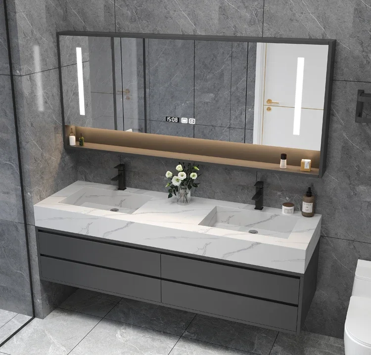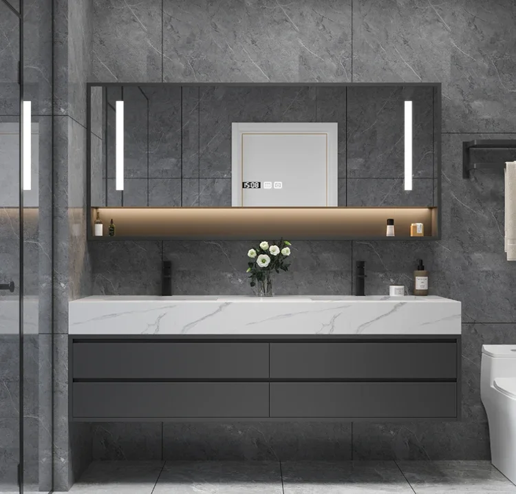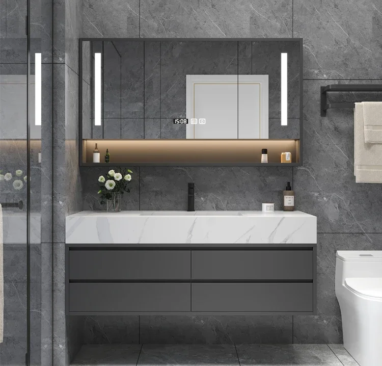 Solid Wood Boards Modern Smart Home Improvement Furniture Bathroom Fixture Bathroom Cabinets Bathroom Vanities Cabinet with Sink