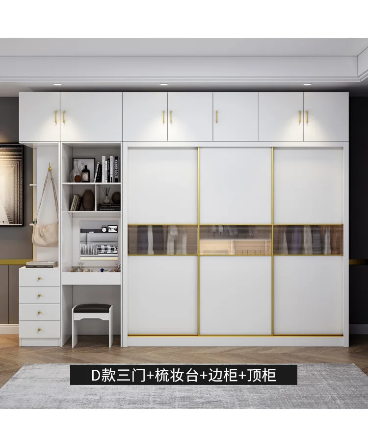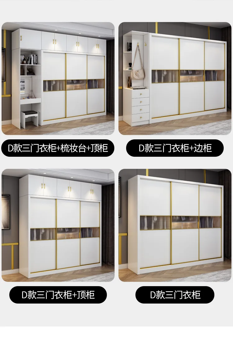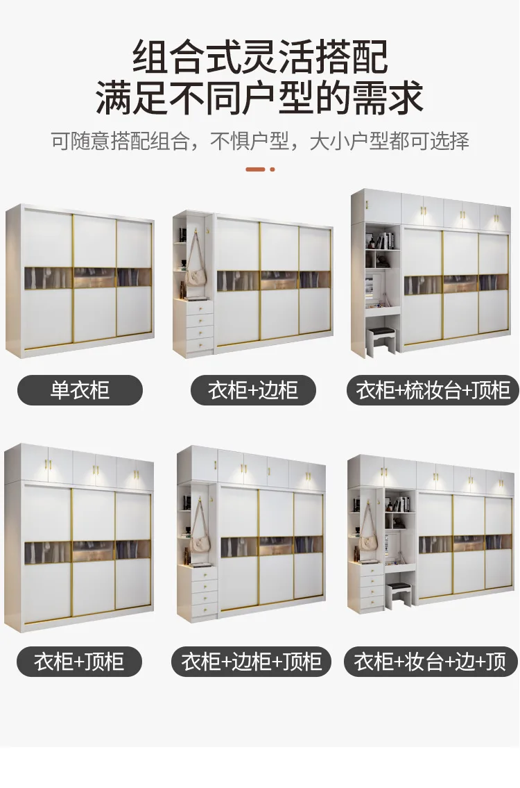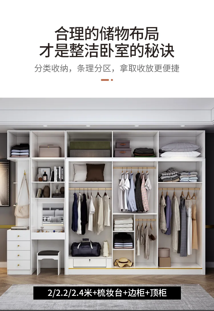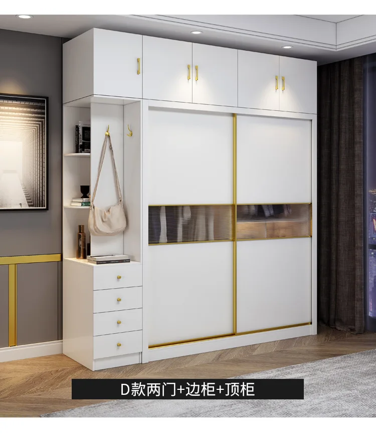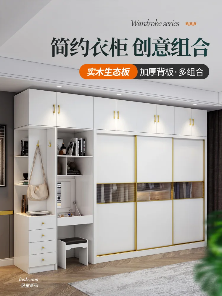 Solid Wood Sliding Door Wardrobe Nordic Modern Bedroom Household Furniture Clothing Closet