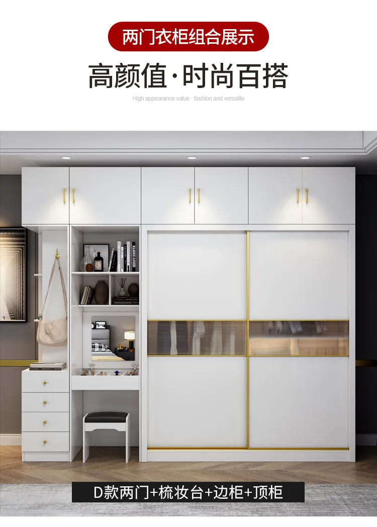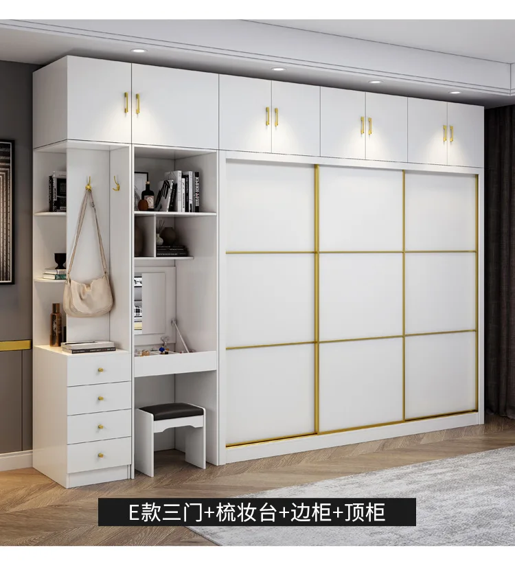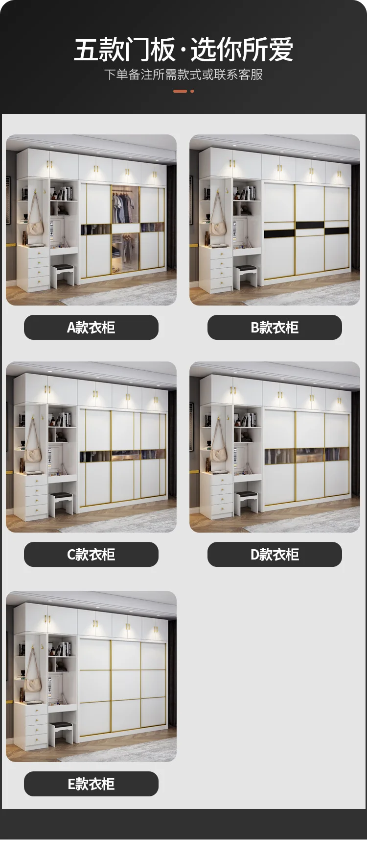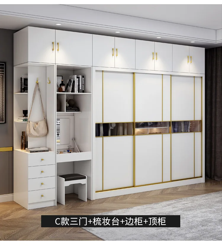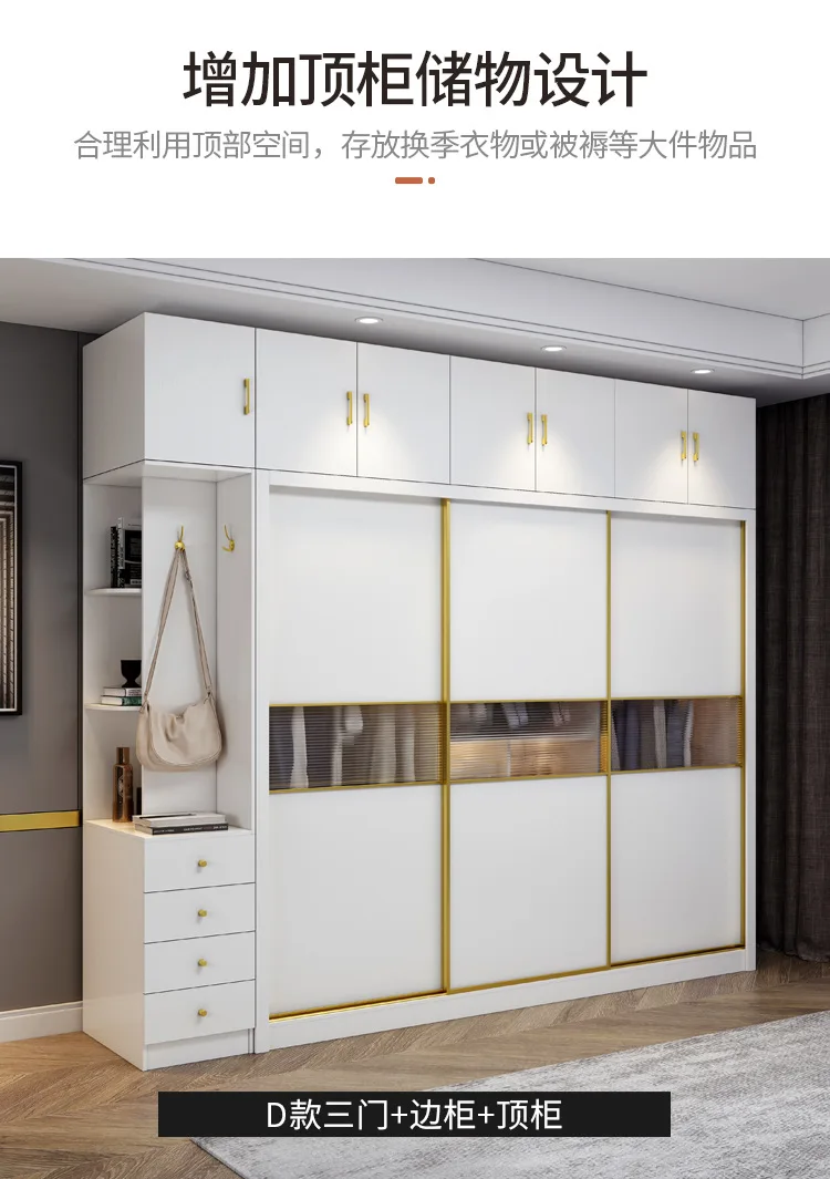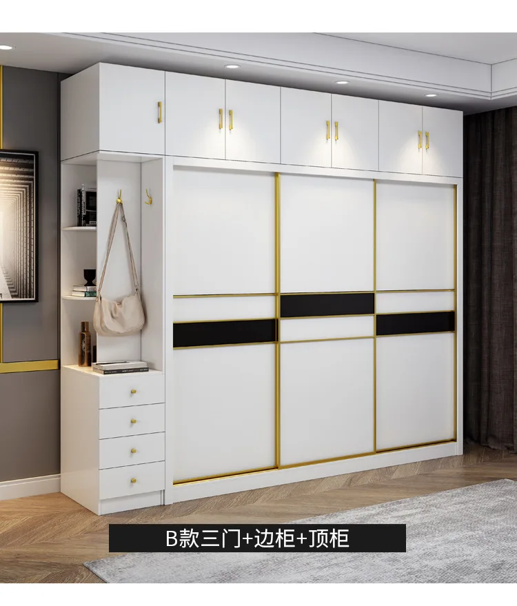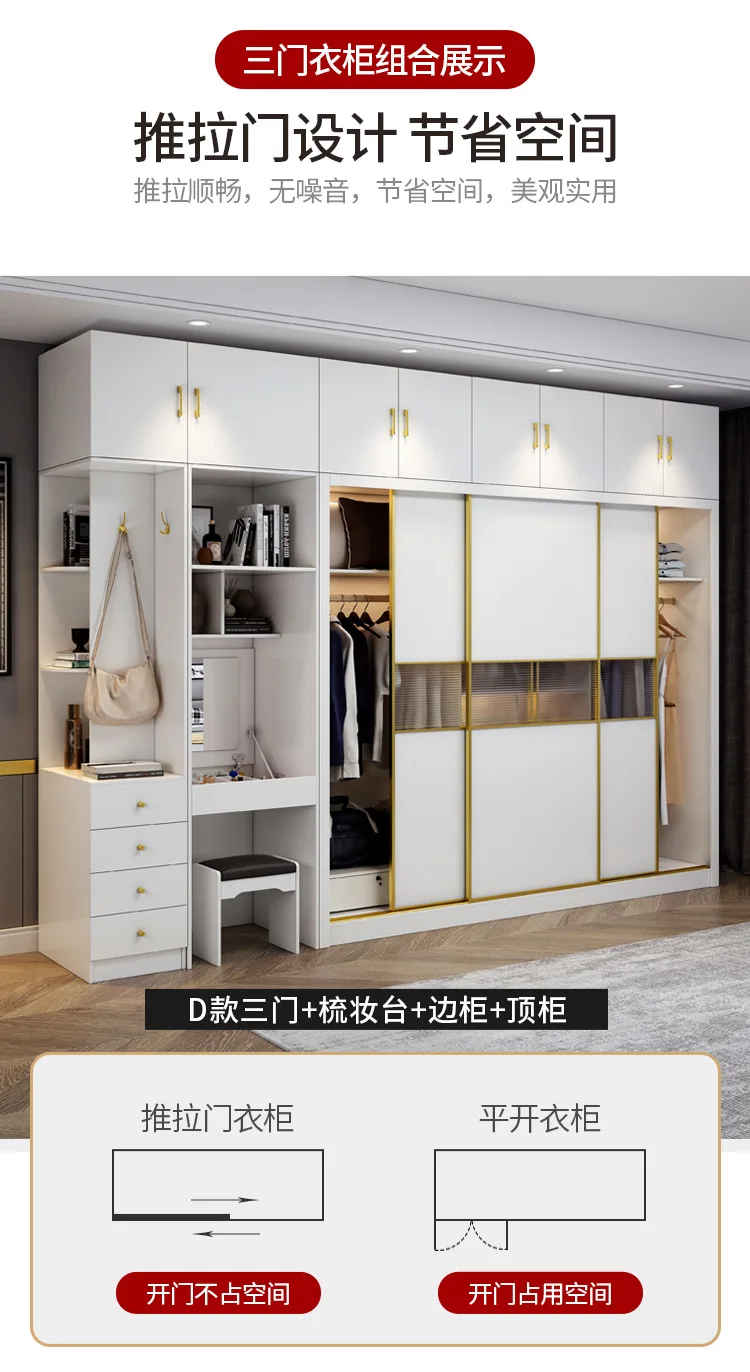 Solid Wood Sliding Door Wardrobe Nordic Modern Bedroom Household Furniture Clothing Closet