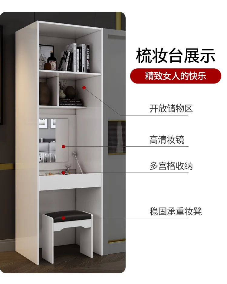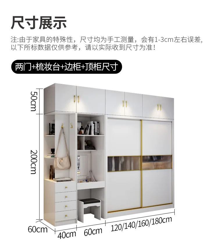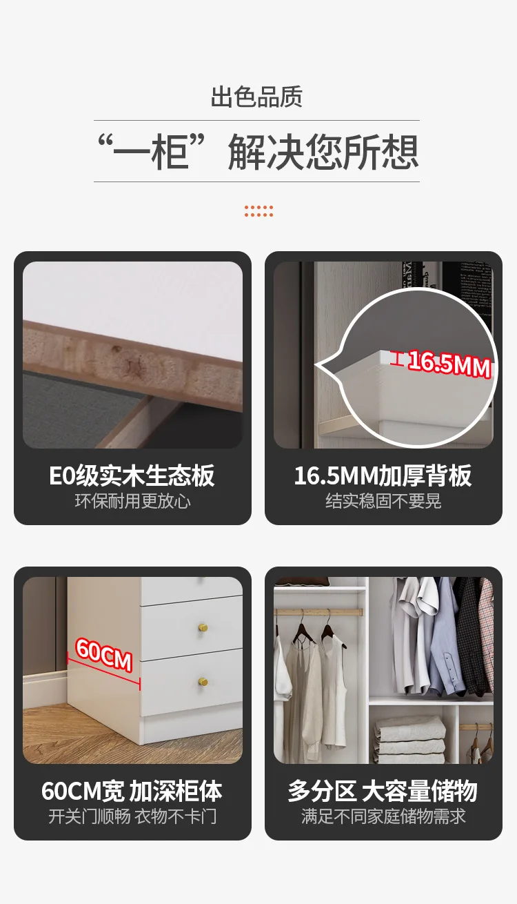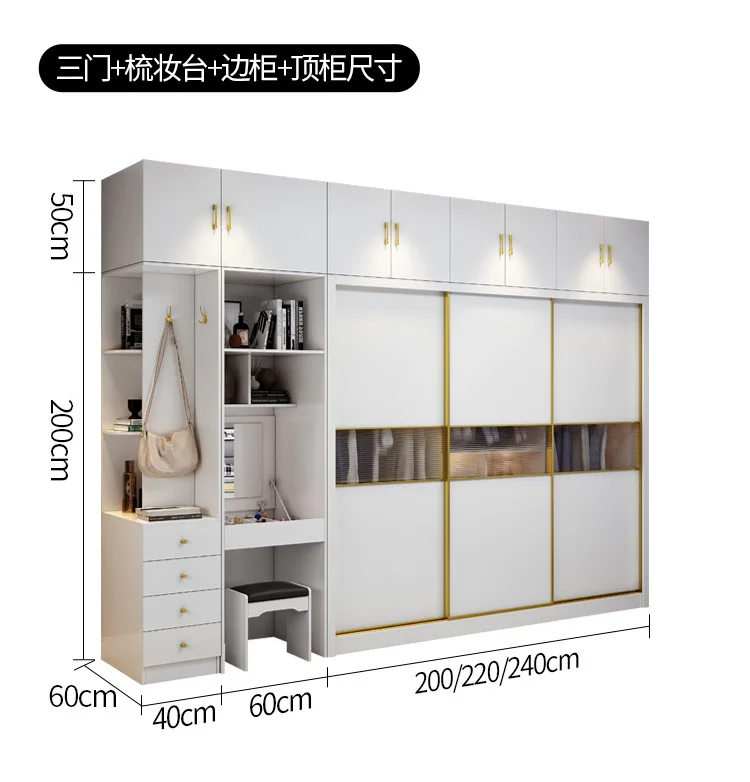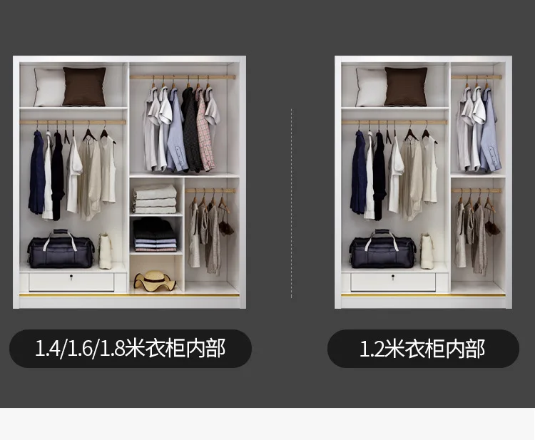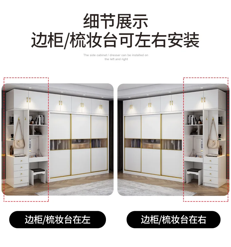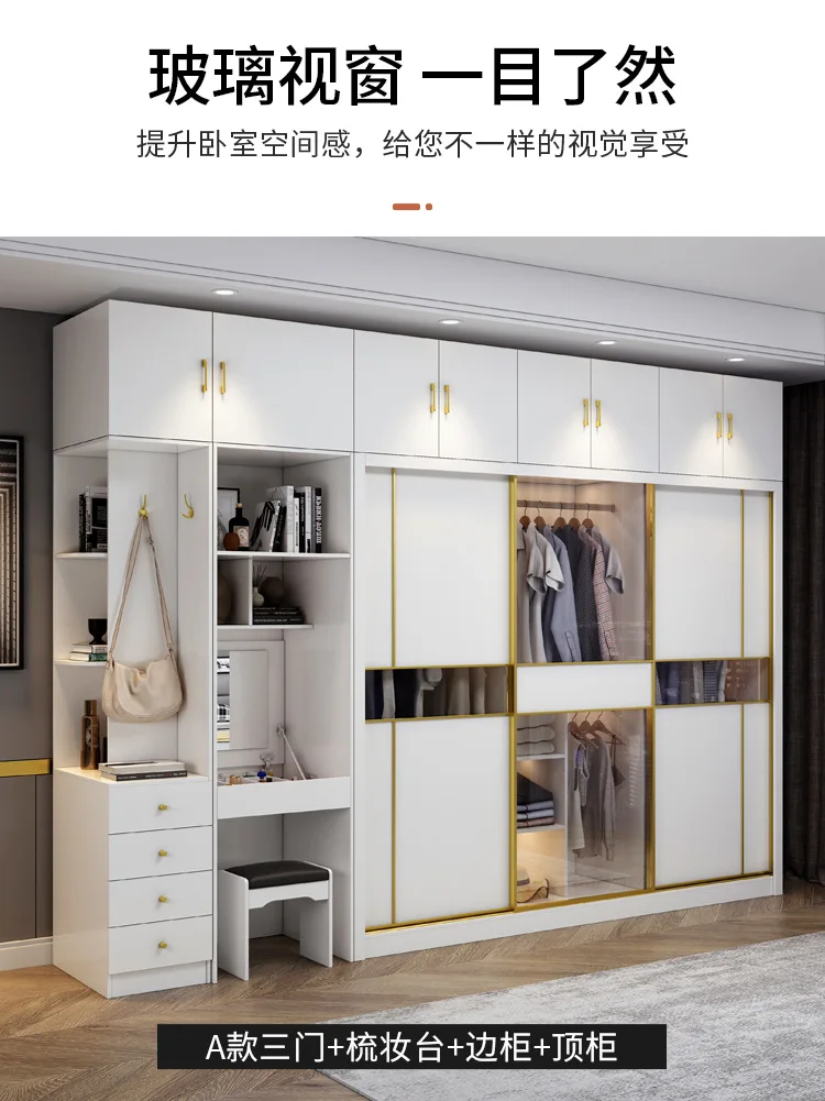 Solid Wood Sliding Door Wardrobe Nordic Modern Bedroom Household Furniture Clothing Closet