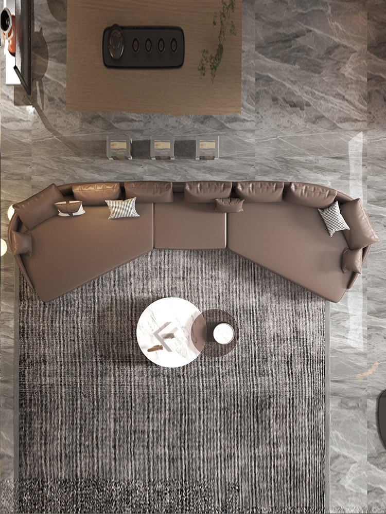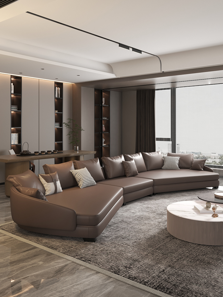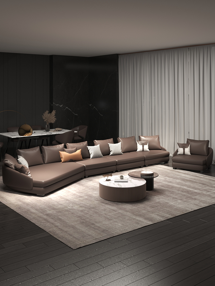 Special-Shaped Corner Leather Sofa Living Room High-End Elegant Italian Light Luxury round Arc Leather Sofa