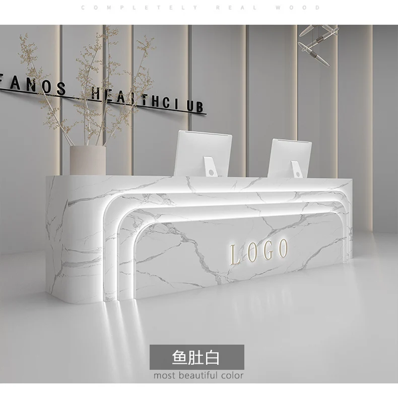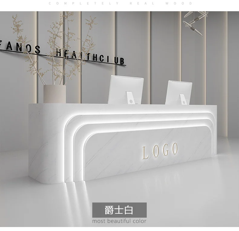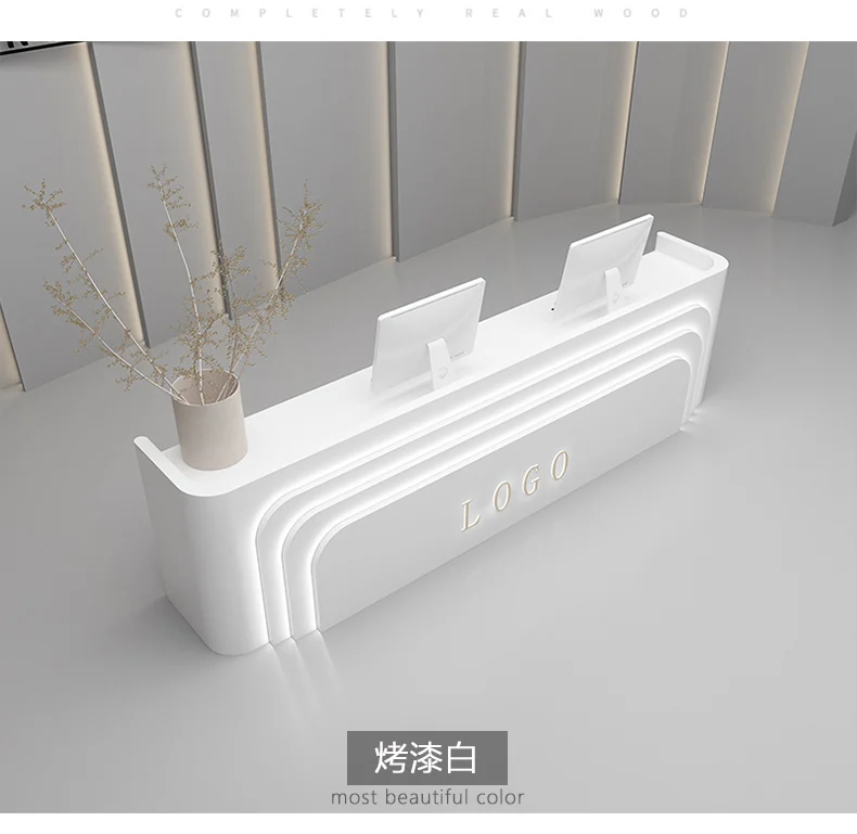 Standing Luxury Reception Desk Front White Wood Modern Reception Desks Hotel Basses Clinic Comptoir Coiffeur Office Furniture