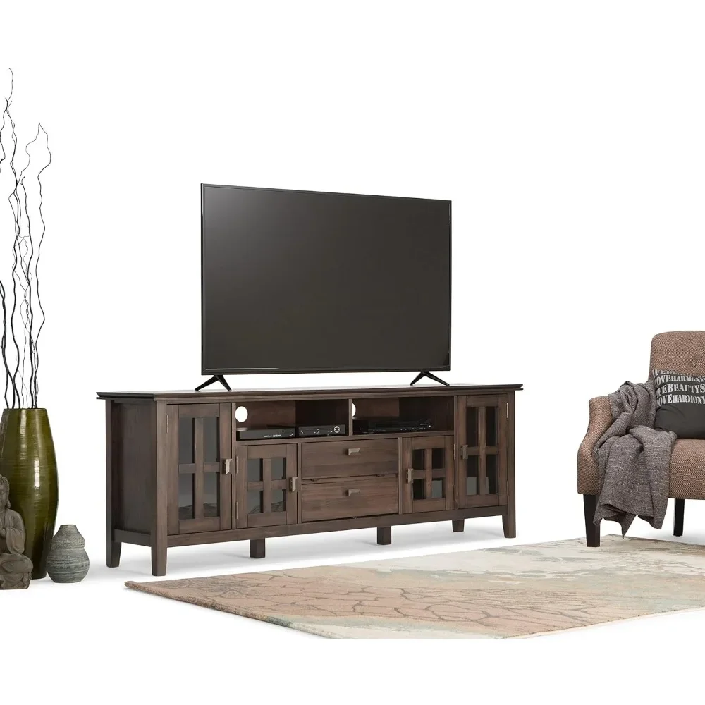 Table for Tv Tables Artisan SOLID WOOD 72 Inch Wide Transitional TV Media Stand in Natural Aged Brown for TVs Up to 80 Inch Ps5