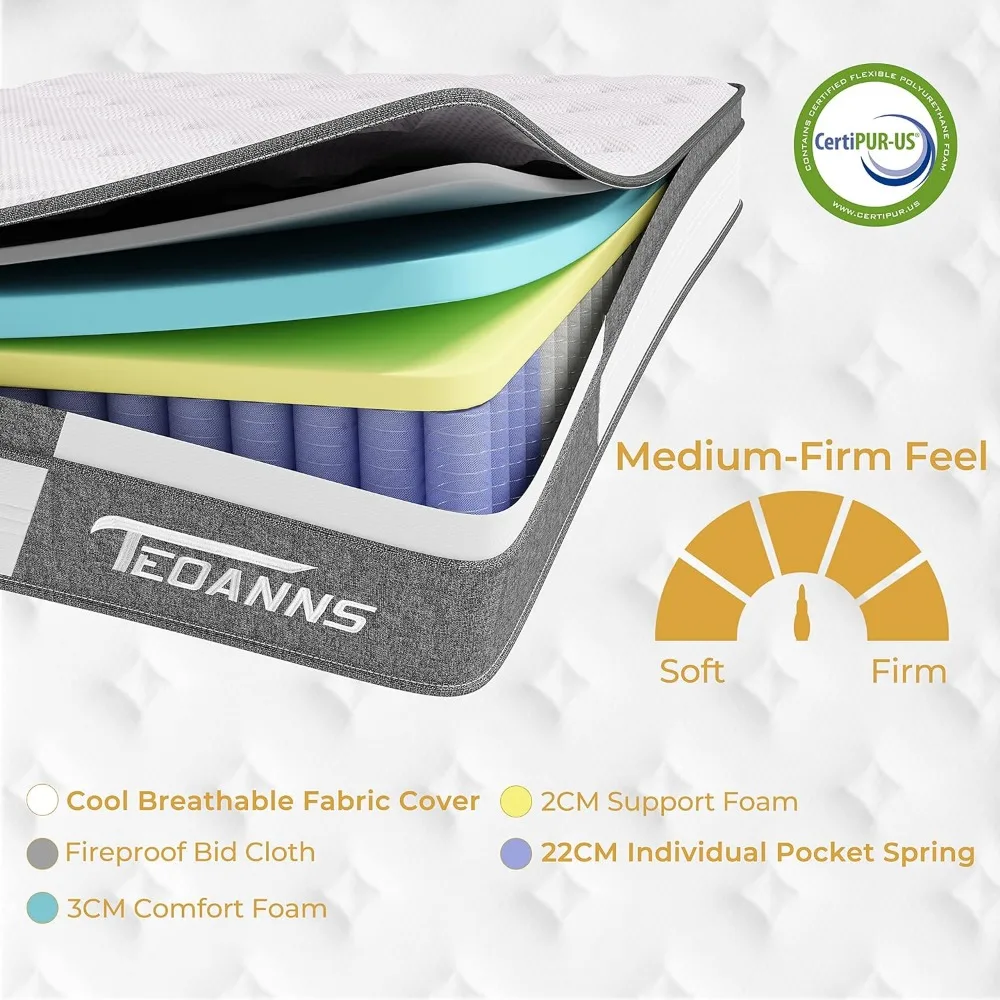 • 【Ensure A Peaceful Undisturbed Sleep】Teoanns full size mattress is made from individually pocket spring, they work independently from each other without worrying about collapse. Teoanns full size mattress absorb sound and vibration effectively, and evenly distribute body weight by providing perfect cushioning pressure relief and great bounce. It also reinforces the edge support and isolates motion transfer to a significant extent.