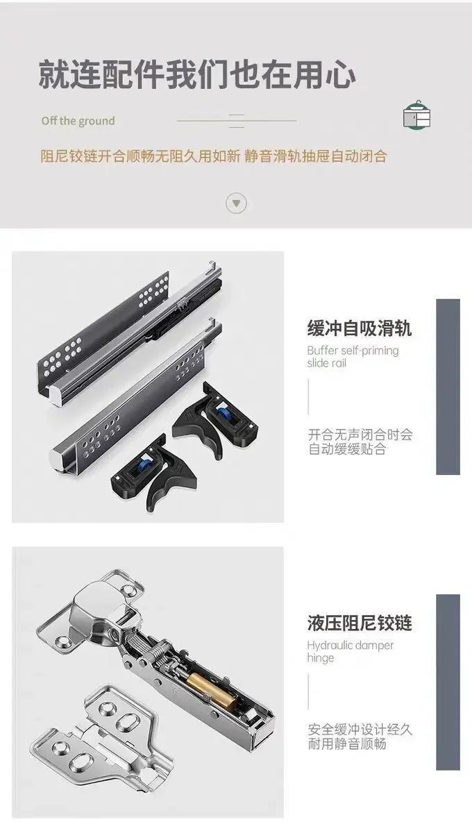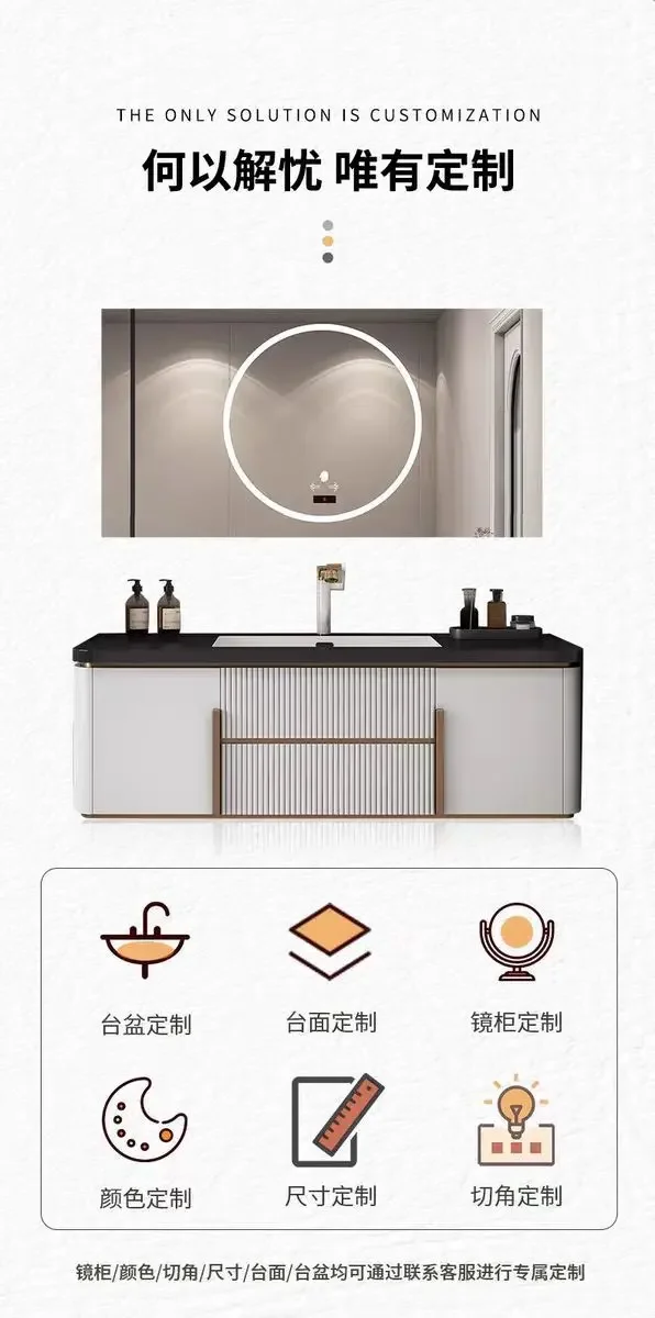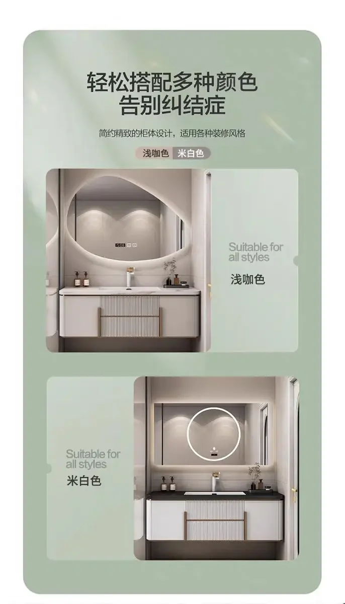 The cabinet body can be selected in white or off white, and the rock board top can be selected in white or black. By default, a combination of off white cabinet body and white rock board is sent