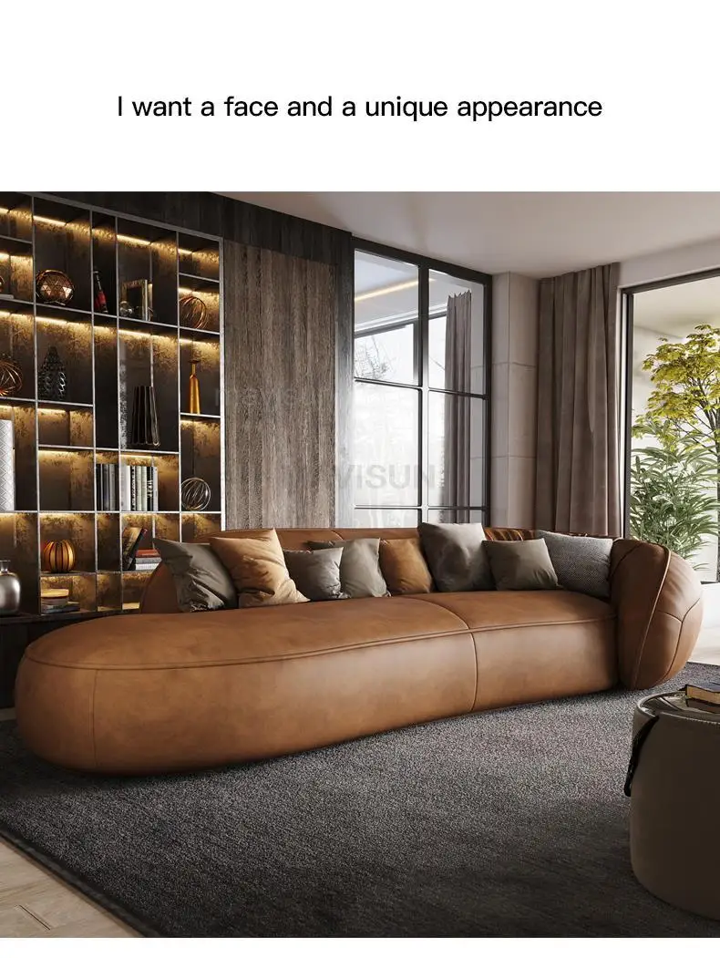 Top Crown Designer Profiled Sofa Light Luxury Living Room Milan High End Frosted Leather Trendy Personalized Sofa Home Furniture