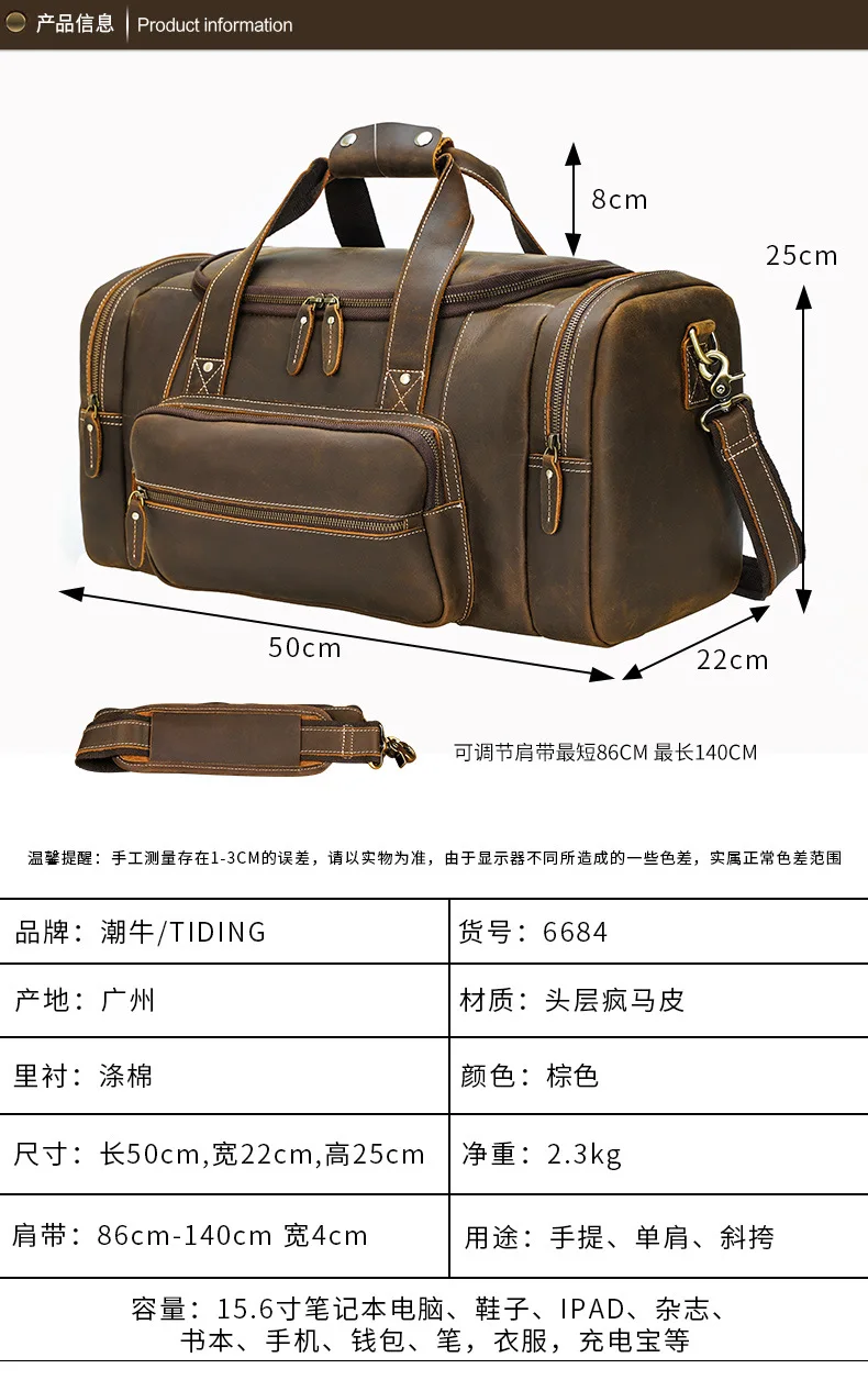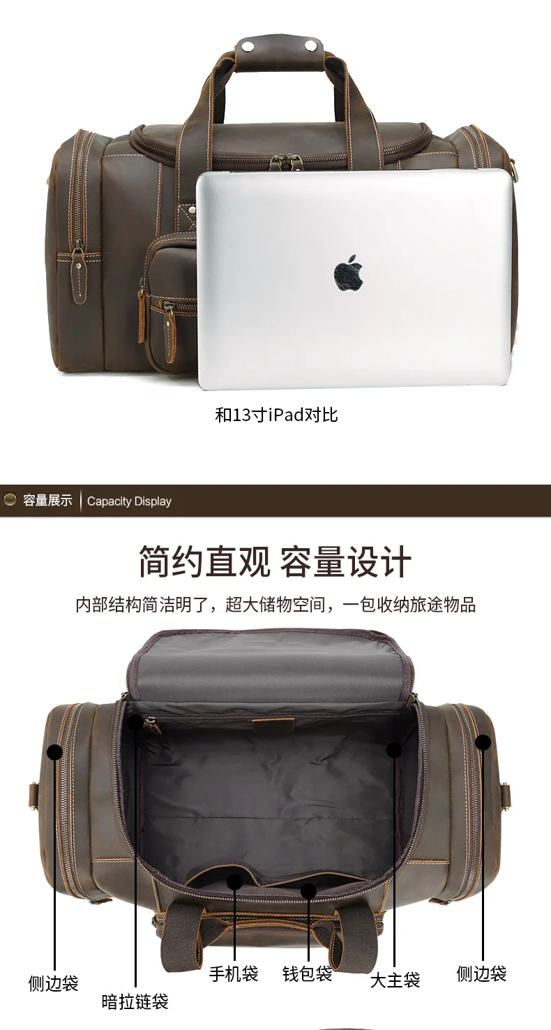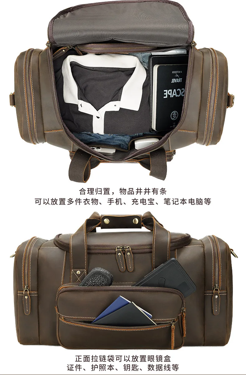 Travel Bag Trendy Cowhide with First Layer Cowhide Portable Multi-functional Large-capacity One-shoulder Luggage Bag Men