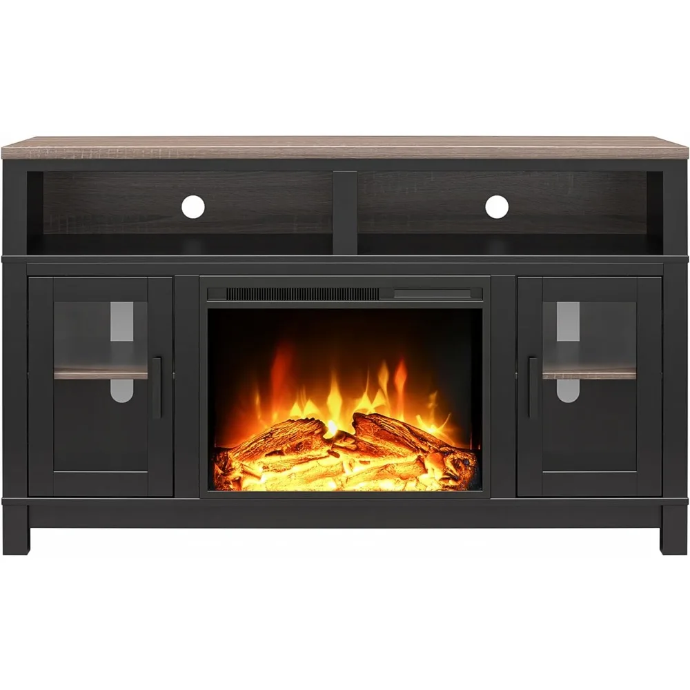 TV cabinet, electric fireplace TV bracket, suitable for black TV storage cabinets up to 60 inches wide