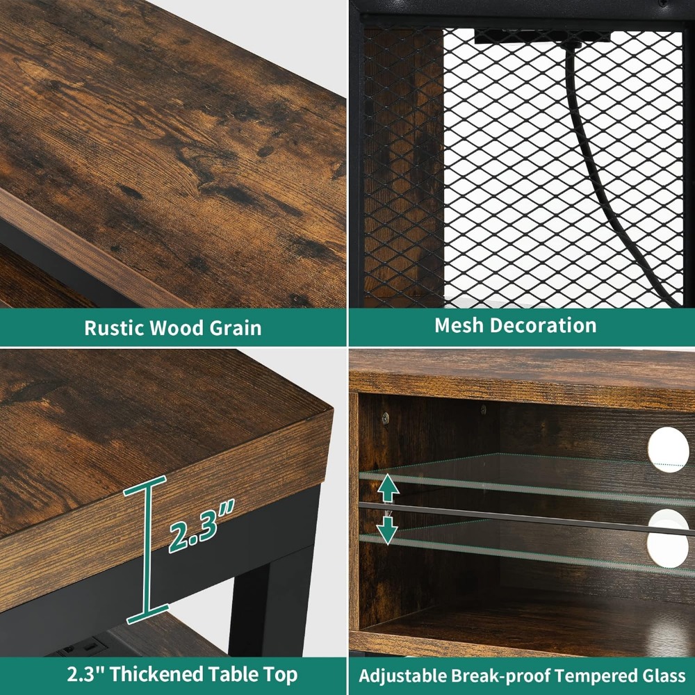 • Modern Industrial Aesthetic: Retro rustic wood finish & mesh sides decoration television stands perfectly combine modern and rustic industrial style to add personality and charm to your living room. The interior 3-levers adjustable shelves and 2 cable management holes help the easy organization and hiding wires