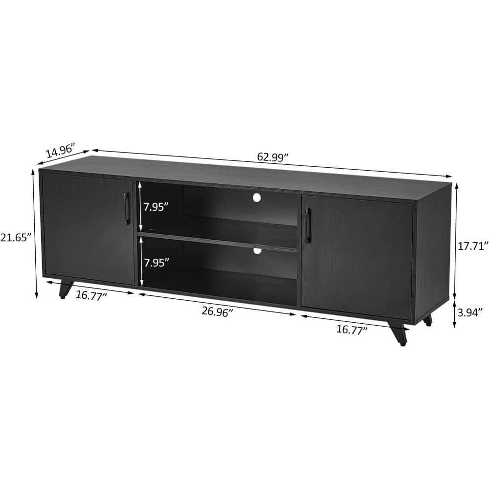- 📺 Large Storage Space - Dimensions: 62.99 in. W x 21.65 in. H x 14.96 in D. Features with 2 doors and 2 cubby spaces provides plenty of open storage space for storing and displaying various components and accessories, ample storage space for media equipment and dvd, game player, cd player, receiver, tv box.