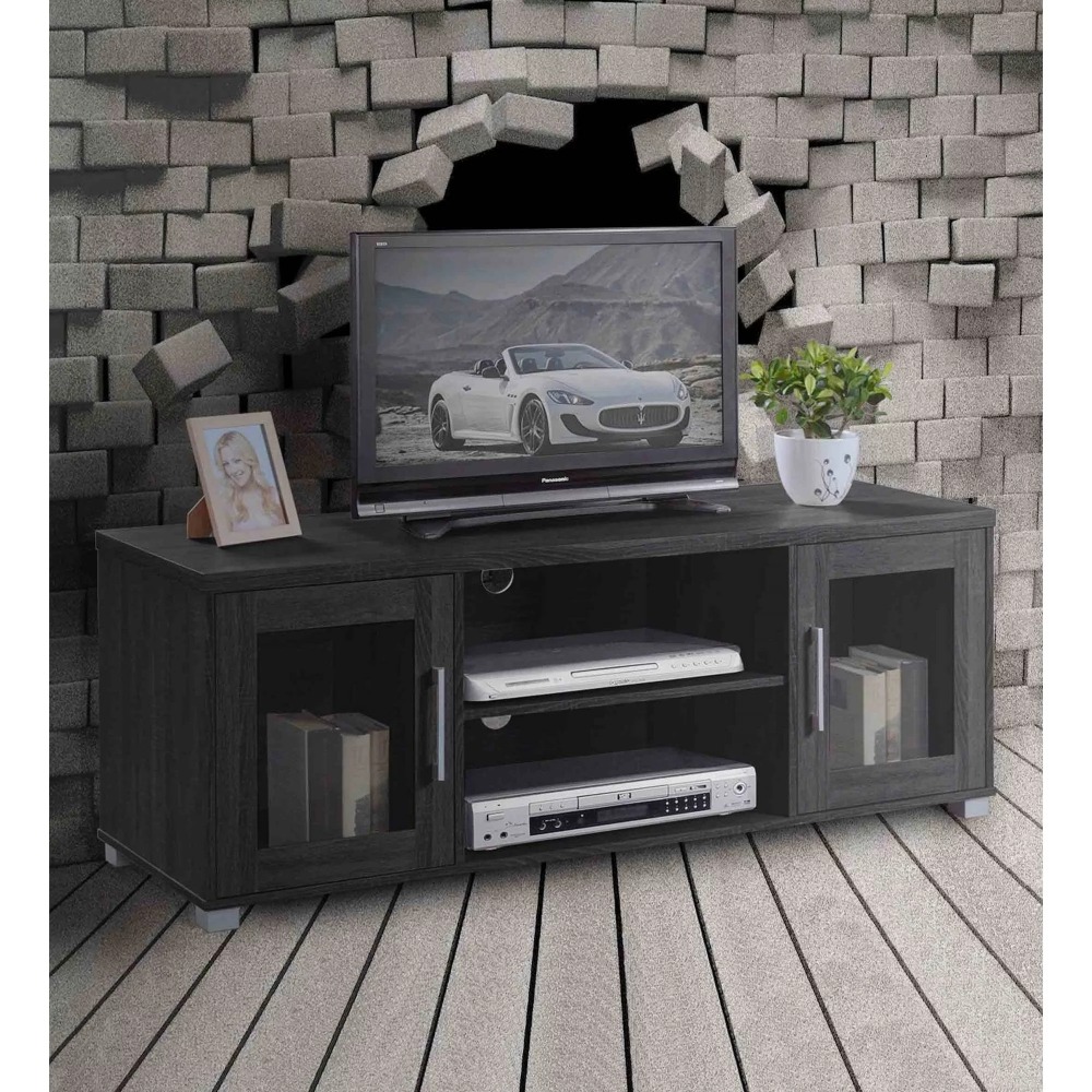 TV cabinet Open Storage 3-in-1 Panel TVs Stand for up to 65"Charcoal home furniture stand modern TVes stand Shelves,Black