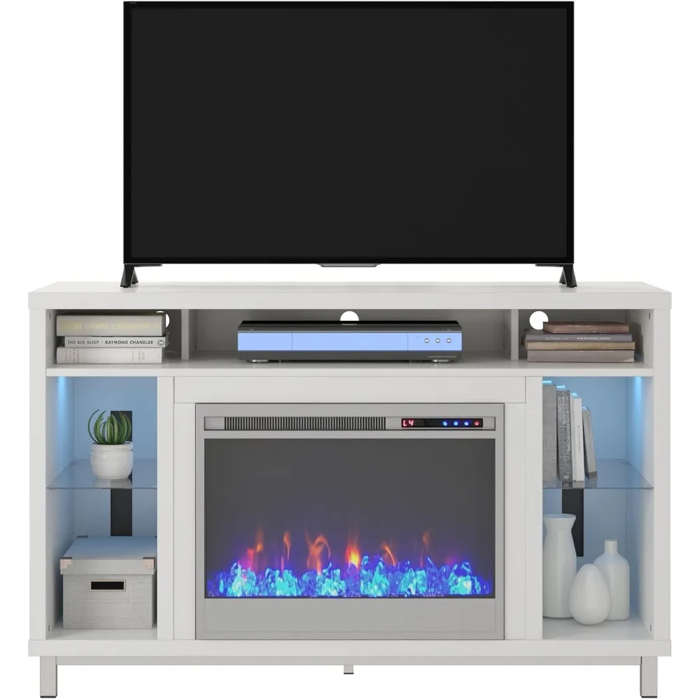 TV cabinet with fireplace rack, can accommodate up to 48 inches of TV, white, living room TV storage rack