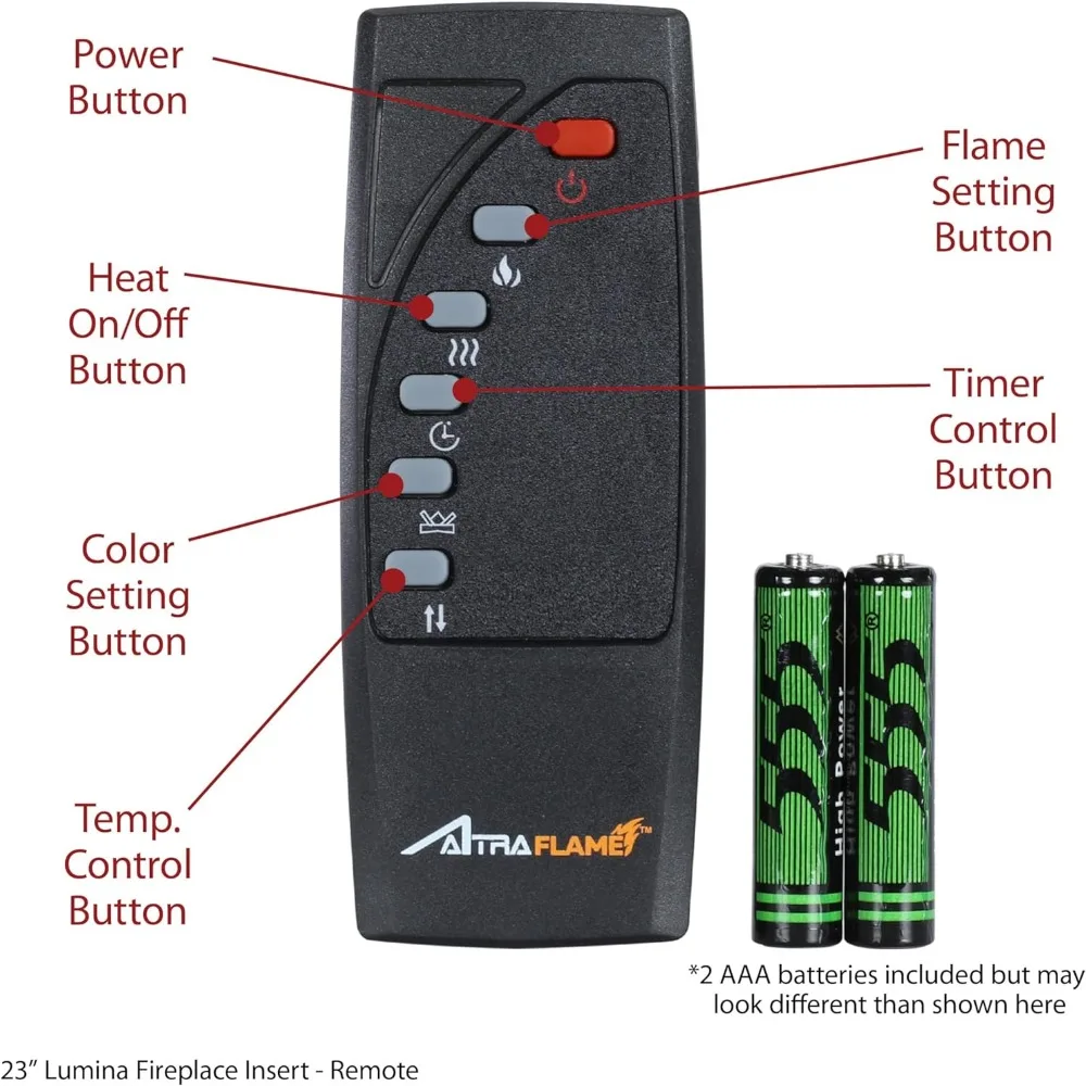 Use included remote control to turn the electric fireplace insert on or off from across the room.