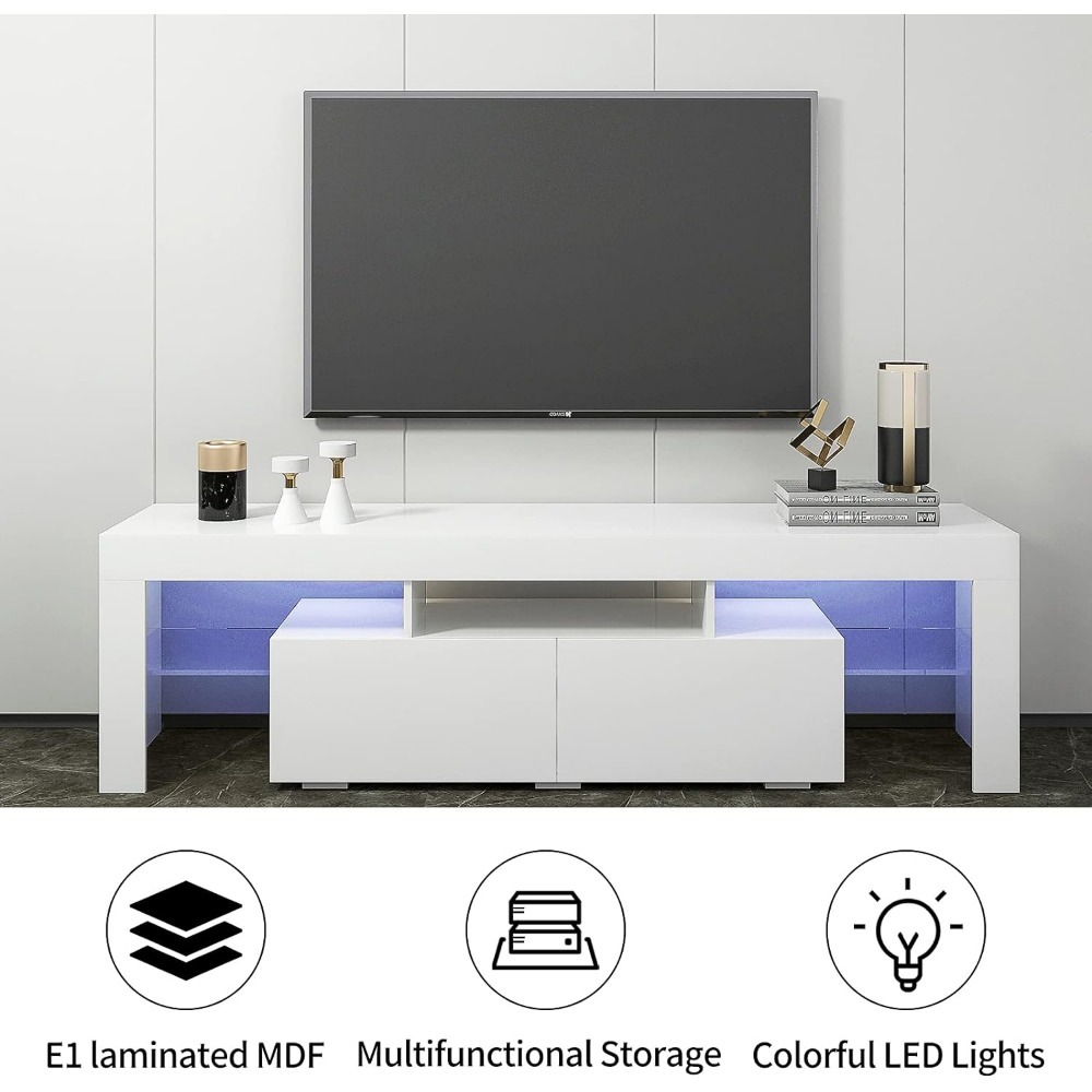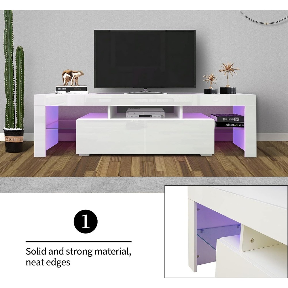 TV Cabinet with LED for 70" TV with 2 Drawers Modern Living Room Furniture Free Shipping