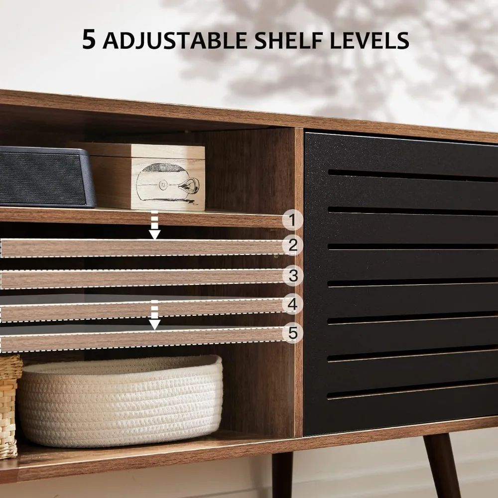 TV Console Table & Entertainment Center Mid Century Modern TV Stand With Adjustable Shelf for Living Room Furniture Ps5 Cabinet