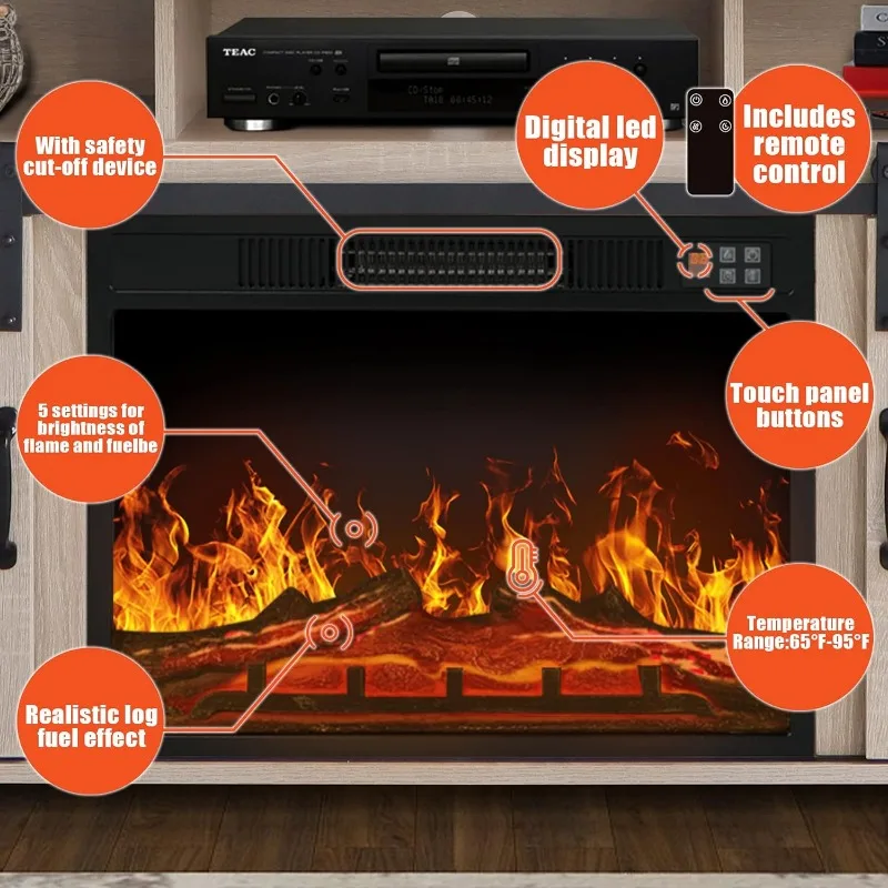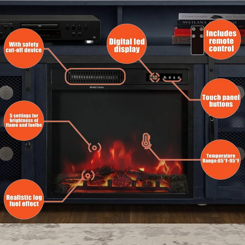 - 【Includes electric fireplace insert with Remote Control】This fireplace insert features a realistic flame effect that can be used with or without heat. The insert heats a room up to 400 sq. ft. and plugs into a standard 120V outlet.