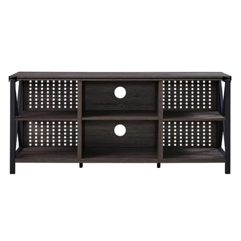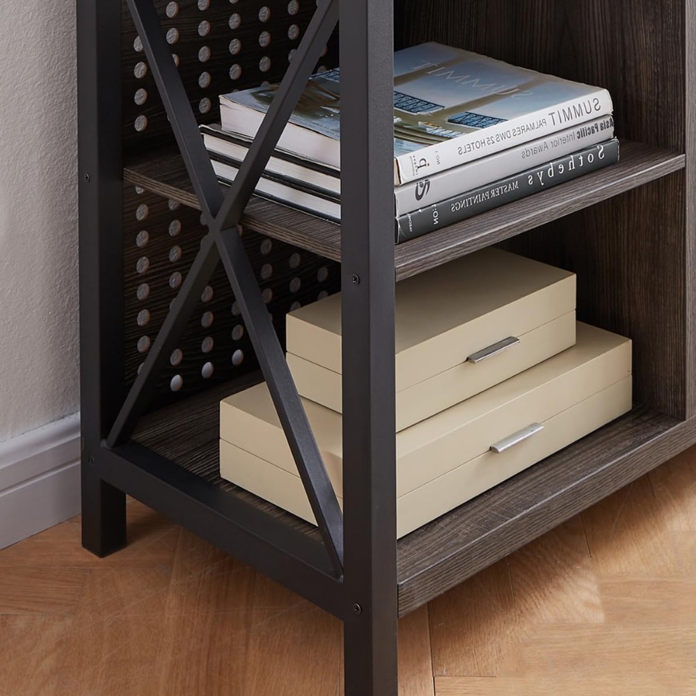 - Shelves and Cable Management Simplify Your Life: This industrial TV stand is designed for simplifying your life. Its 4 open shelves on the side are the perfect perch for books and games, and open middle shelves can easily hold a media console or cable box. And cable management is included, so cords won' t be tangled.