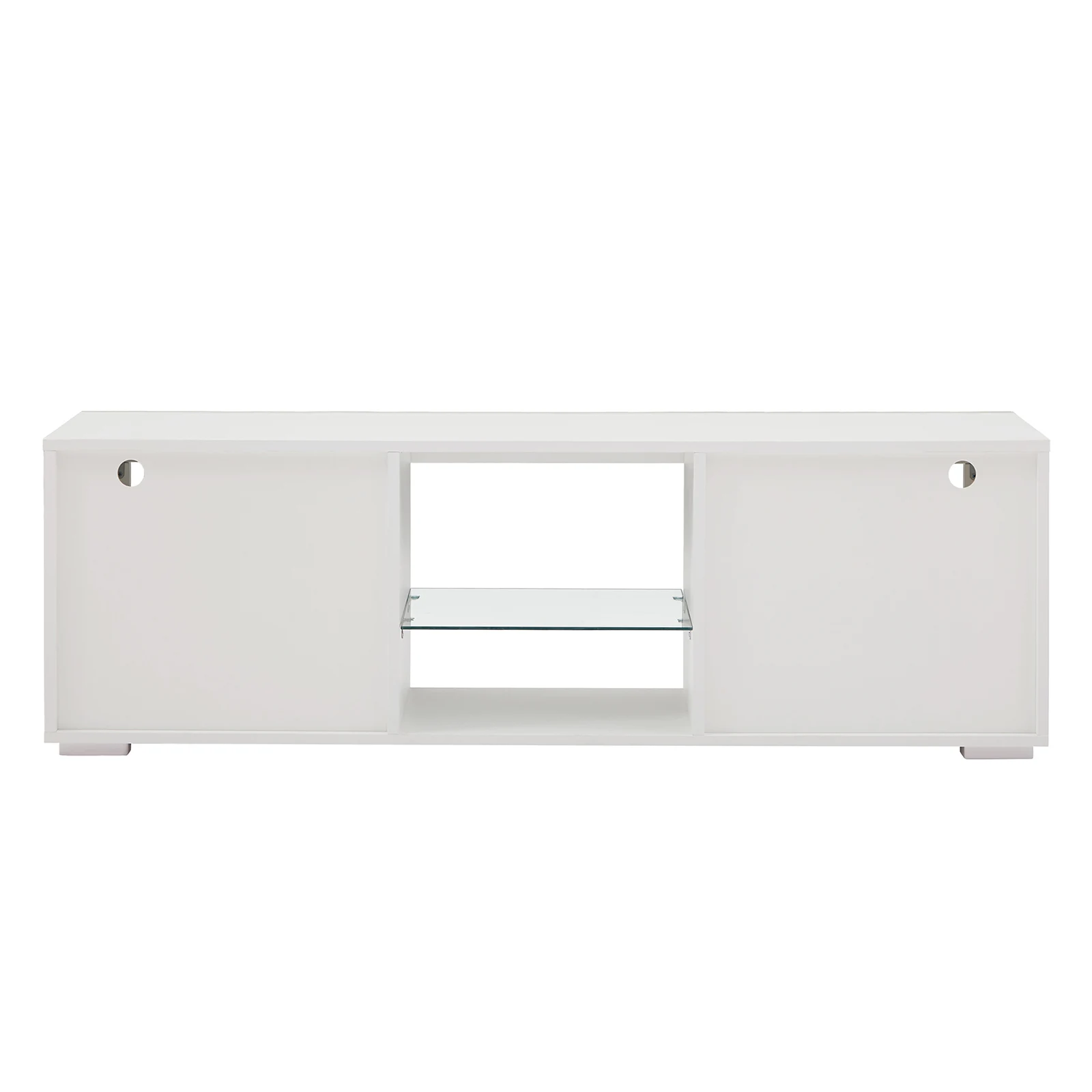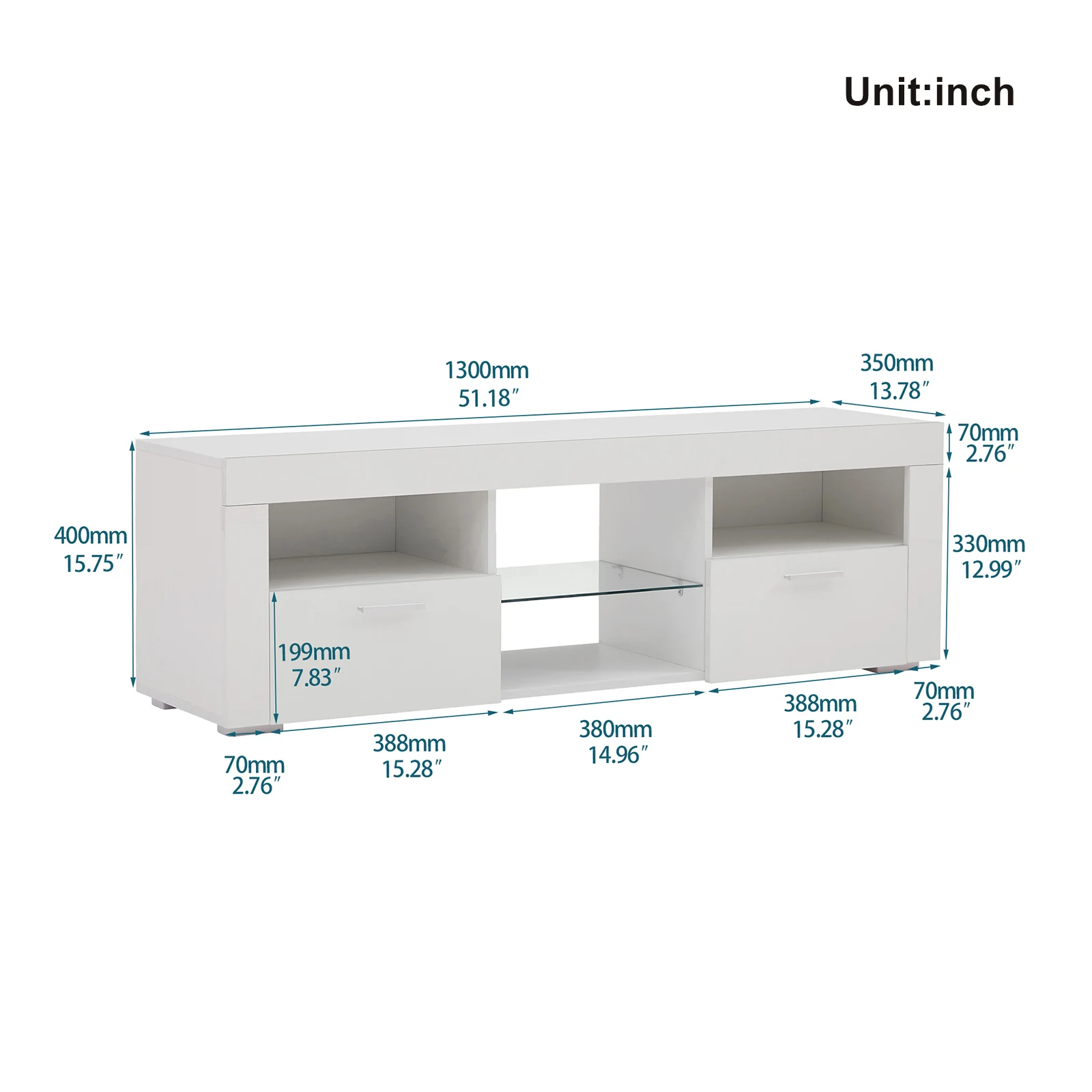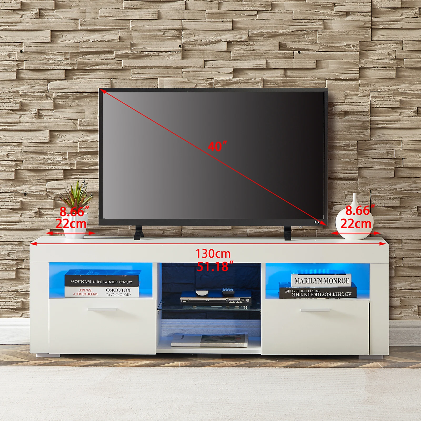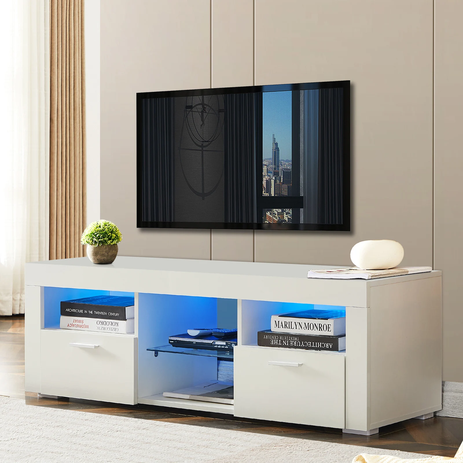 TV Stand with LED Lights and 2 Large Storage Drawer,High Glossy TV Cabinet For Living Room or Bedroom Furniture