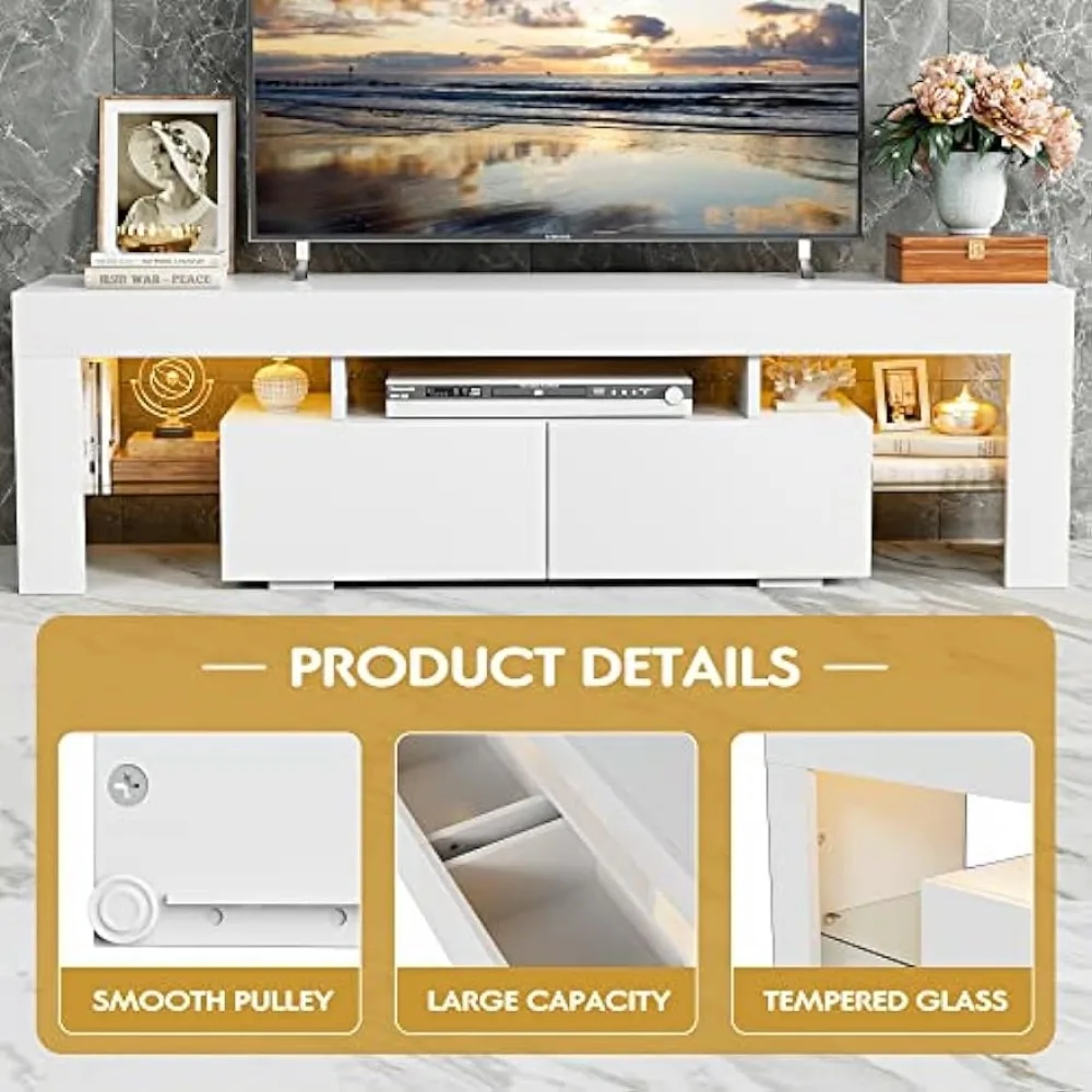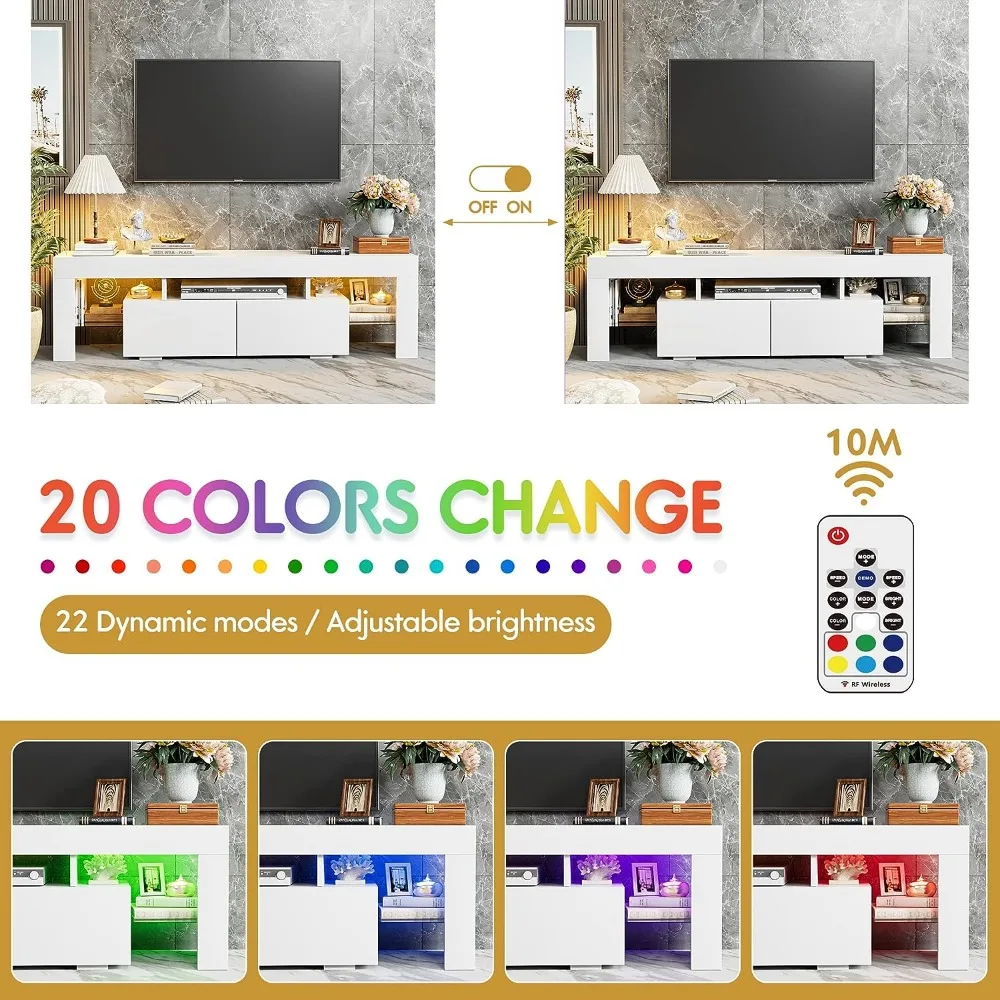 - 【Remote Control LED】This LED TV Cabinet with 20-color LED lights and 22 dynamic modes is ideal for home lovers. It is compatible with various places and adjusts the lights of different colors according to different preferences, making the whole home show different styles of charm.