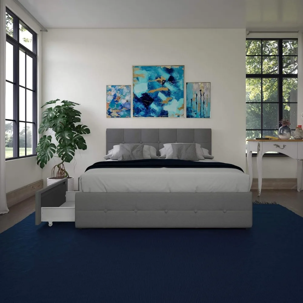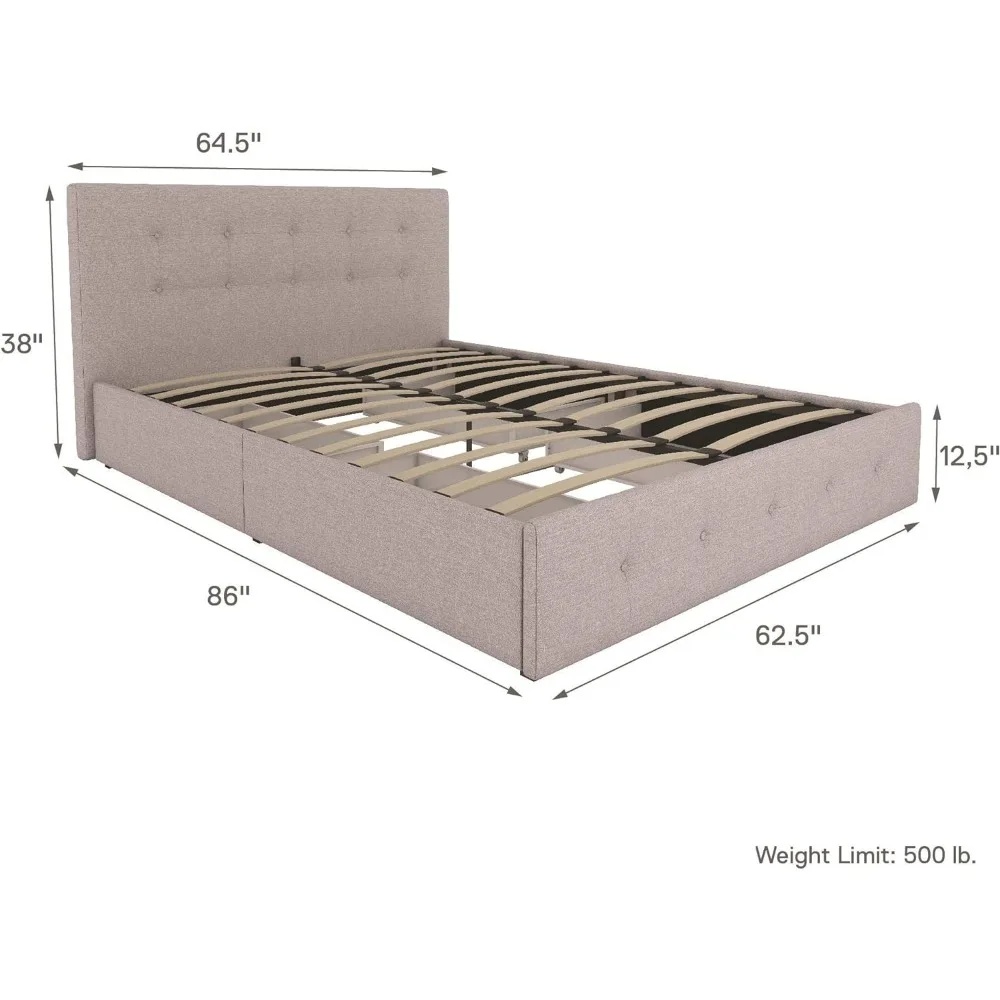 Upholstered Platform Bed With Underbed Storage Drawers and Button Tufted Headboard and Footboard King Size Bed Frame Queen Home