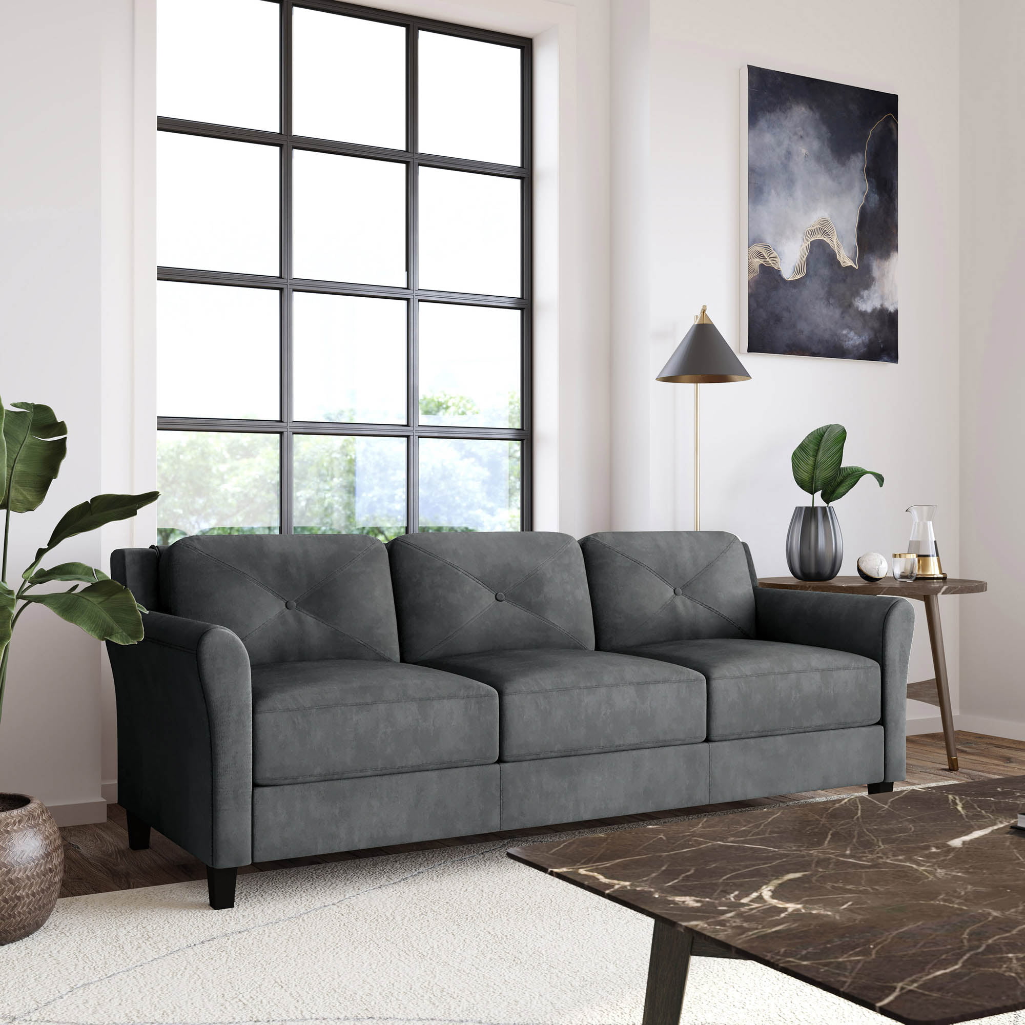 Upholstered Sectional Sofa with Rolled Arms, Fabric, for Compact Living Space, Bedroom, Living Room, Apartment
