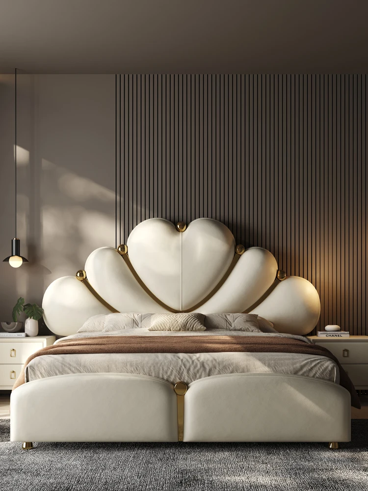 Waterproof Nordic Aesthetic Double Bed European Queen Twin King Headboard Double Bed Frame White Luxury Cama Casal Furniture