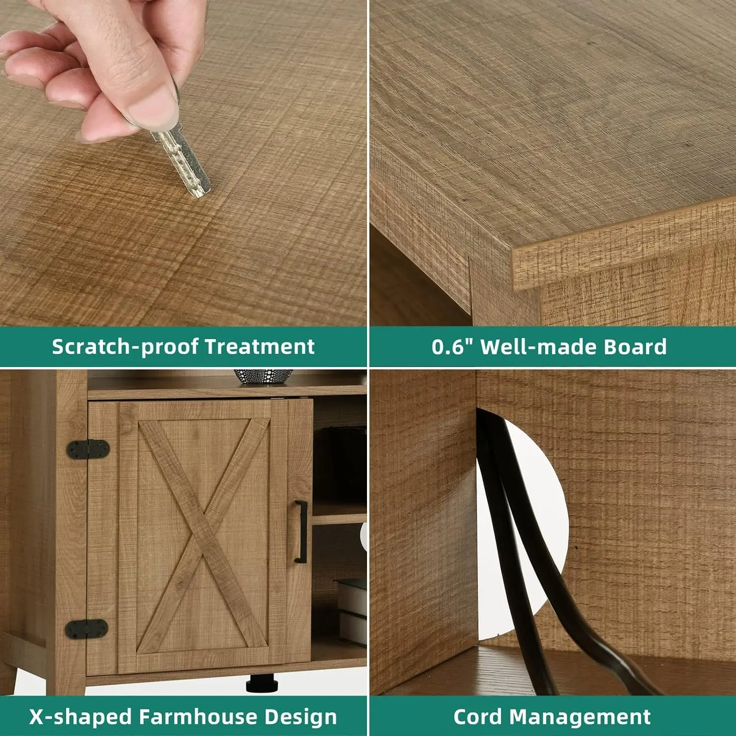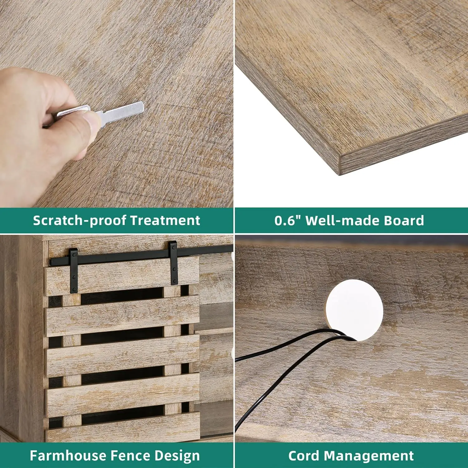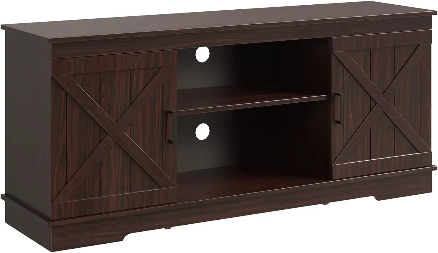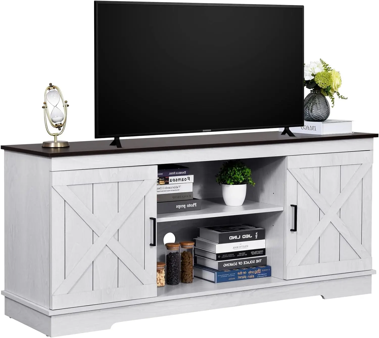 • SCRATCH-PROOF & STURDY FOR 300LBS - The farmhouse TV stand is made from well-done P2 MDF with high-level wood grain. This TV stand fits 50/ 55/ 60/ 65 inch TV. Dimensions: 15.7"D x 59.5"W x 26"H
