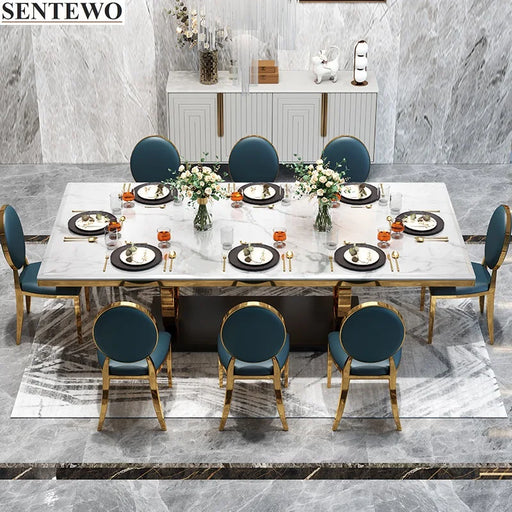 Original price $6,568.99 - Original price $21,714.99Original price $6,568.99 - Original price $21,714.99Original price $6,568.99$5,254.99 - $17,371.99$5,254.99 - $17,371.99Current price $5,254.99| /SENTEWO Luxury Marble Dining Table and 8 Dinning Chairs Stainless Steel Golden Leg Frame Dinner Table Chair Set Haute De Cuisine