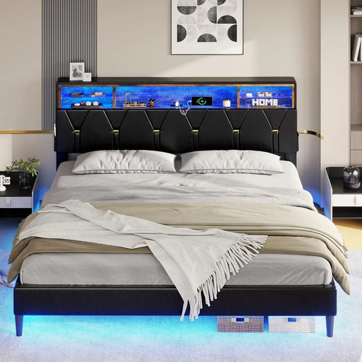 Original price $723.99 - Original price $1,120.99Original price $723.99 - Original price $1,120.99Original price $723.99$517.99 - $800.99$517.99 - $800.99Current price $517.99| /King Size Bed Frame with LED Lights and Headboard Storage, LED Bed Frame King Size with Charging Station, Upholstered Bed Frame