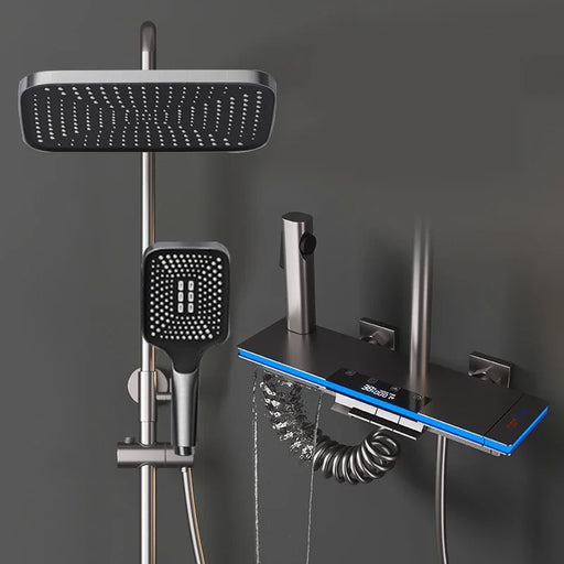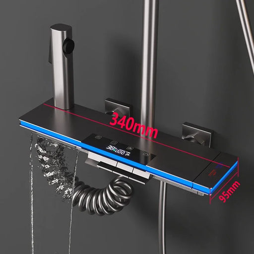 Original price $630.99Original price $630.99 - Original price $630.99Original price $630.99Current price $504.99$504.99 - $504.99Current price $504.99| /Top1 Atmosphere Lamp Bathroom Gray Shower System Full Set Wall Mounted Bathtub Digital Display Shower Set with Bidet Faucet suit