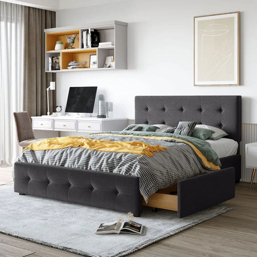 Original price $1,452.99 - Original price $1,651.99Original price $1,452.99 - Original price $1,651.99Original price $1,452.99$1,037.99 - $1,179.99$1,037.99 - $1,179.99Current price $1,037.99| /Upholstered Bed Frame Queen Size with 4 Storage Drawers and Button Tufted Headboard, Comfort Adjustable Mattress Height