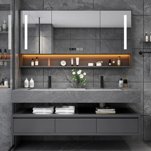 Original price $3,272.99 - Original price $7,580.99Original price $3,272.99 - Original price $7,580.99Original price $3,272.99$2,618.99 - $6,064.99$2,618.99 - $6,064.99Current price $2,618.99| /Light Luxury Bathroom Artificial Rock Panel Smart Solid Wood Bathroom Cabinet Set Bathroom Double Basin Bathroom Sink Cabinet