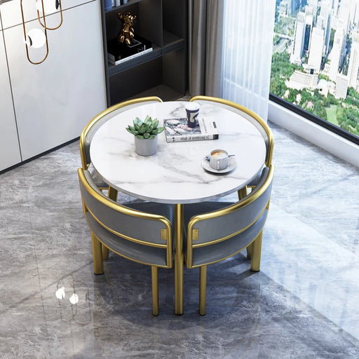 Original price $1,275.99 - Original price $3,477.99Original price $1,275.99 - Original price $3,477.99Original price $1,275.99$1,020.99 - $2,782.99$1,020.99 - $2,782.99Current price $1,020.99| /Marble round dining table and chair combination simple modern small family light luxury stainless steel 6-person dining table No