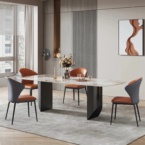 Original price $2,194.99 - Original price $3,652.99Original price $2,194.99 - Original price $3,652.99Original price $2,194.99$1,755.99 - $2,921.99$1,755.99 - $2,921.99Current price $1,755.99| /Modern Minimalist Kitchen Table Stainless Steel Feet Furniture Leather Chair And Rectangle Table Light Luxury Dining Room Sets
