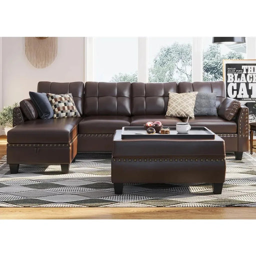 Original price $2,287.99Original price $2,287.99 - Original price $2,430.99Original price $2,287.99Current price $1,634.99$1,634.99 - $1,736.99Current price $1,634.99| /Brown Leather Sectional Sofa with Ottoman - Easy Assembly, Storage Space