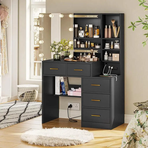 Original price $673.99Original price $673.99 - Original price $673.99Original price $673.99Current price $539.99$539.99 - $539.99Current price $539.99| /BTHFST Vanity Desk with Sliding Mirror and Lights, Makeup Vanity with Lights, Charging Station and Nightstand, Makeup Table