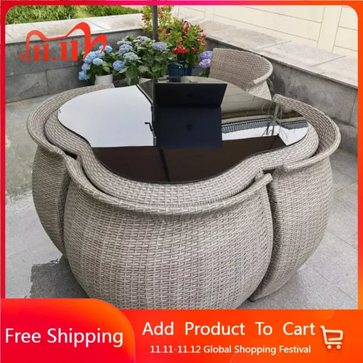 Original price $2,168.99Original price $2,168.99 - Original price $2,745.99Original price $2,168.99Current price $1,734.99$1,734.99 - $2,196.99Current price $1,734.99| /Outdoor Terrace Leisure Folding Rattan Iron Table and Chair Garden Balcony Leisure Furniture Combination Set Sun Umbrella Sets