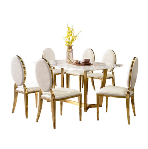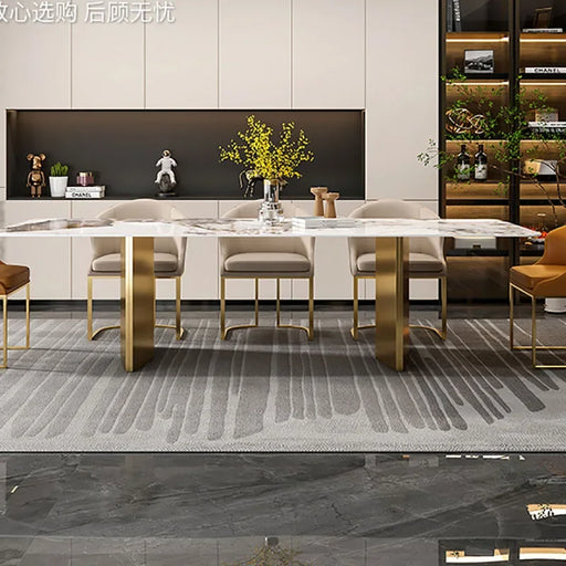 Original price $3,894.99 - Original price $4,679.99Original price $3,894.99 - Original price $4,679.99Original price $3,894.99$3,115.99 - $3,743.99$3,115.99 - $3,743.99Current price $3,115.99| /Champagne gold plating creative light luxury rock plate marble dining table and chair combination household high-grade rectangul