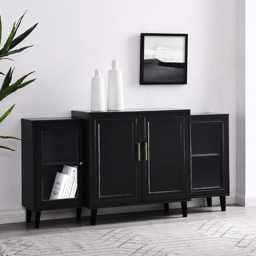 Original price $1,460.99Original price $1,460.99 - Original price $1,460.99Original price $1,460.99Current price $1,168.99$1,168.99 - $1,168.99Current price $1,168.99| /TV cabinet, 4-door layered modern side panel self-service storage table, 62, black, TV stand storage cabinet